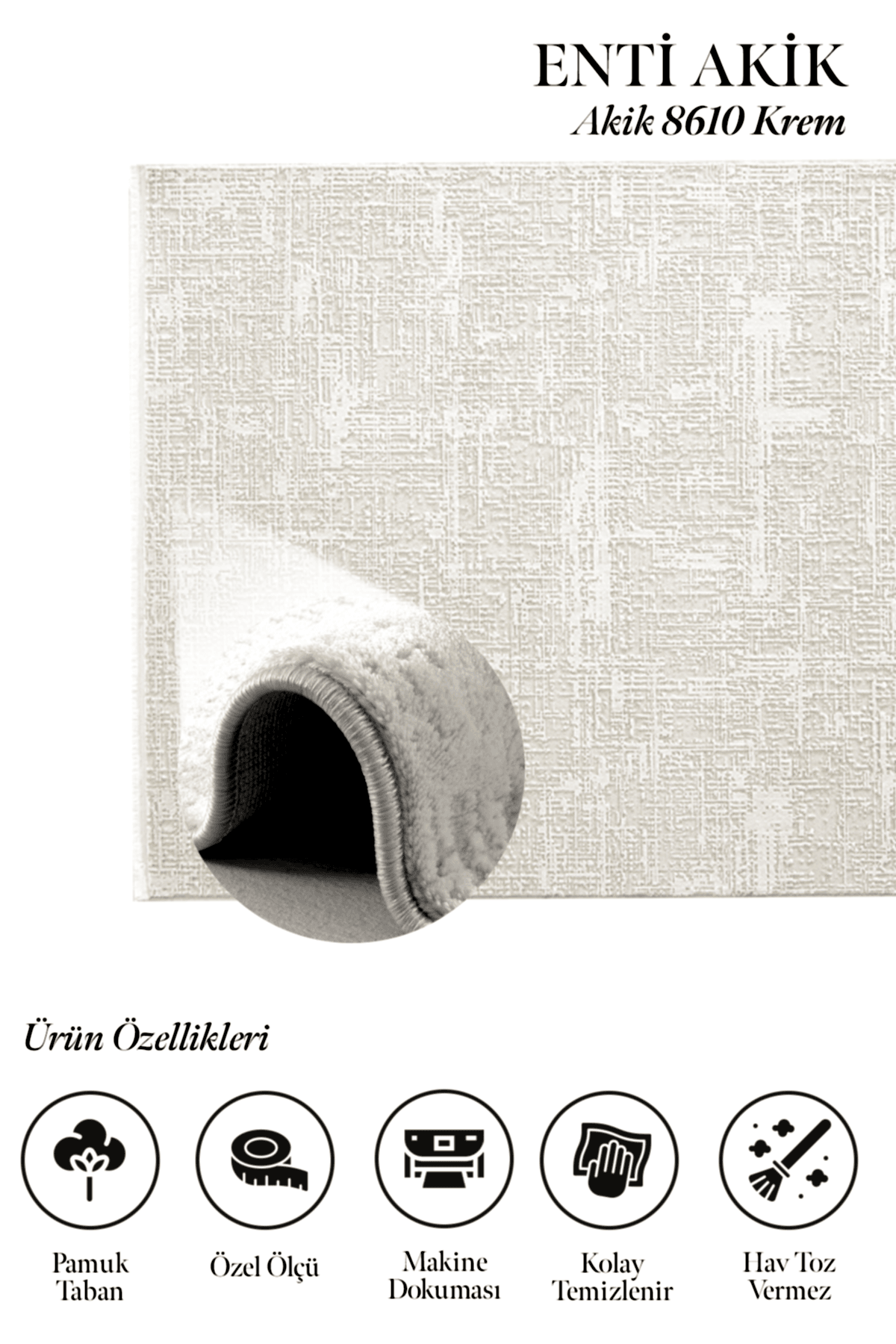 Akik 8610 Krem – Pamuk Tabanlı, Kolay Temizlenebilir Halı