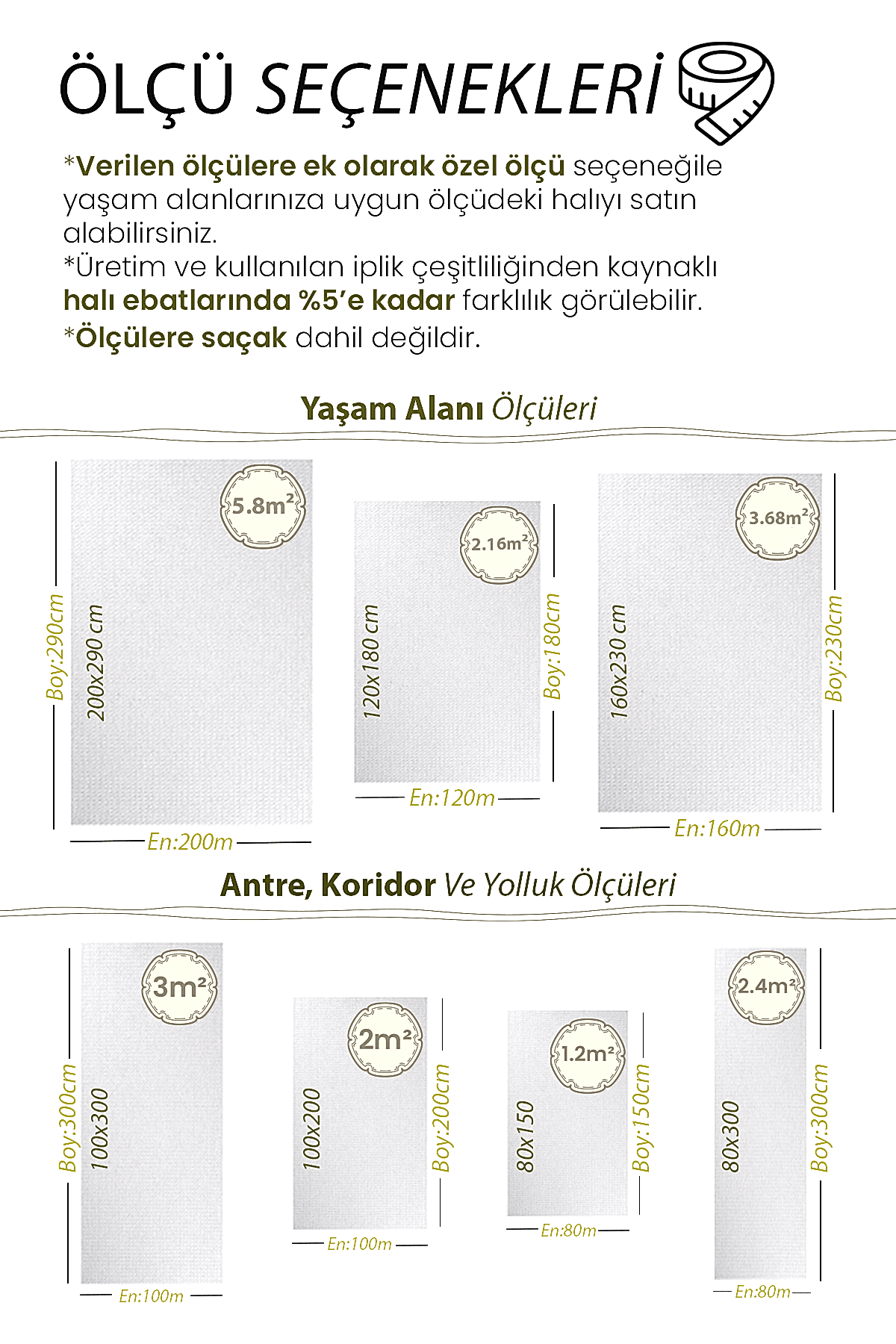 | Ölçü | 80×150, 100×150, 80×200, 80×250, 100×200, 120×180, 80×300, 120×200, 100×250, 80×350, 100×300, 120×250, 80×400, 160×200, 100×350, 80×450, 120×300, 160×230, 80×500, 100×400, 160×250, 120×350, 100×450, 120×400, 160×300, 100×500, 200×250, 120×450, 200×290, 120×500 |