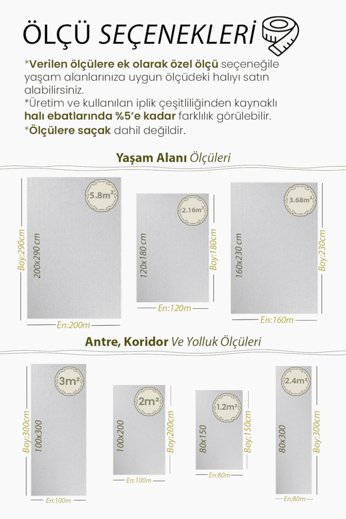 | Ölçü | 80×150, 100×150, 80×200, 80×250, 100×200, 120×180, 80×300, 120×200, 100×250, 80×350, 100×300, 120×250, 80×400, 160×200, 100×350, 80×450, 120×300, 160×230, 80×500, 100×400, 160×250, 120×350, 100×450, 120×400, 160×300, 100×500, 200×250, 120×450, 200×290, 120×500 |