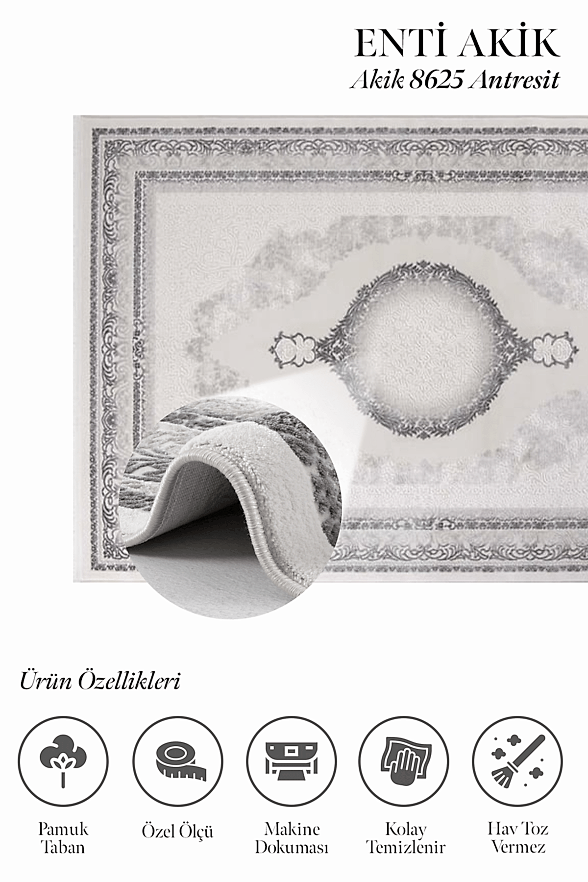 Akik 8625 Antrasit – Klasik Medallion Desenli Salon Halısı