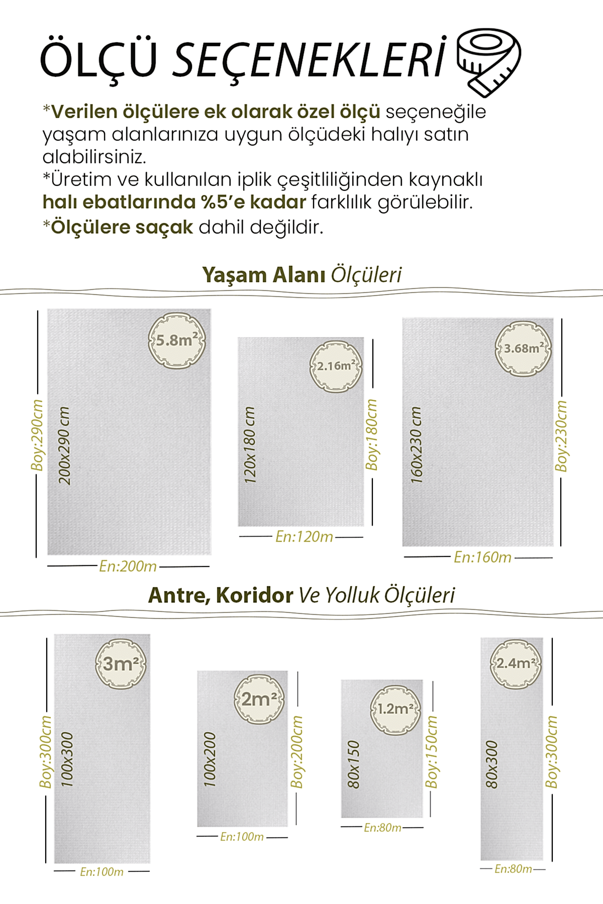 | Ölçü | 80×150, 100×150, 80×200, 80×250, 100×200, 120×180, 80×300, 120×200, 100×250, 80×350, 100×300, 120×250, 80×400, 160×200, 100×350, 80×450, 120×300, 160×230, 80×500, 100×400, 160×250, 120×350, 100×450, 120×400, 160×300, 100×500, 200×250, 120×450, 200×290, 120×500 |
