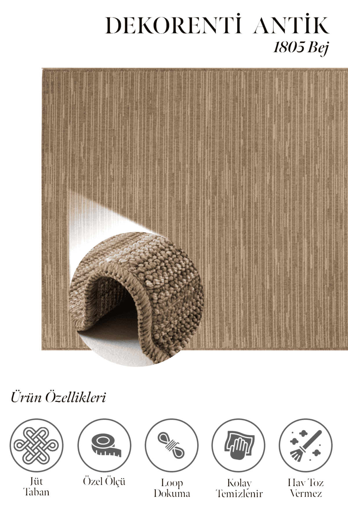 Antik 1805 Bej – Sade ve Şık Çizgili Bej Renk Halı Modeli