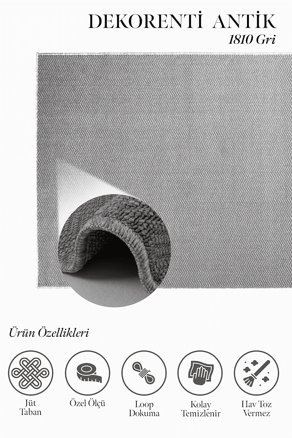 Antik 1810 Gri – Soğuk Gri Renkli Minimalist Halı Tasarımı