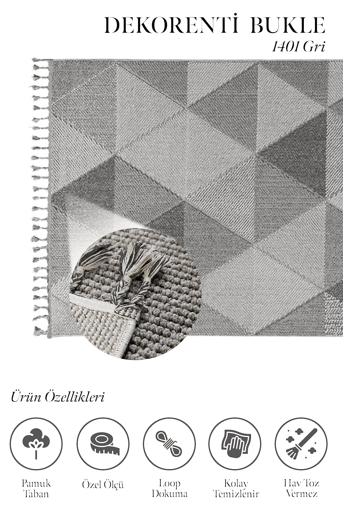 Loop dokuma şekliyle üretilen jüt tabanlı Bukle serisi diğer serilerden farklılaşır. Spor desen türündedir ve yüzeyindeki geometrik şekilli desenleri ile dikkat çekicidir. Üstelik Bukle Serisi Dekorenti Halı markasının ekonomik halı serilerinden biridir. 67.200 ilme ucu sıklığında 7mm hav yüksekliğindedir. Ayrıca polip iplik türünde olmasından dolayı tozumaz ve antialerjik özelliğe sahiptir. Artı olarak örgü saçakları halıya değer katar. Yan tarafları overlok dikişlidir. Desenlerindeki gri, krem, bej, sarı ve mavi tonda zengin renk seçenekleri seçiminizde size avantaj sağlar. Hafifliği ile de size kolaylık sağlayan farklı tarz Bukle serisiyle, evinizde yeniden şekillendirin ve kendinizi mutlu edin.