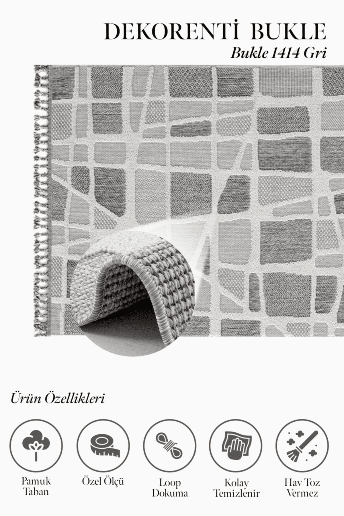 Bukle 1414 Gri – Gri Tonlarda Yumuşak Dokulu Modern Halı