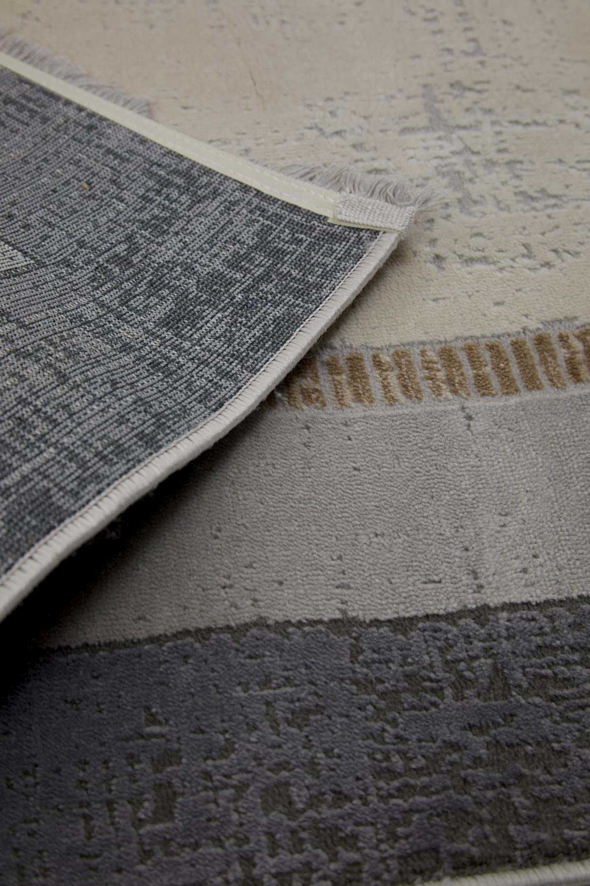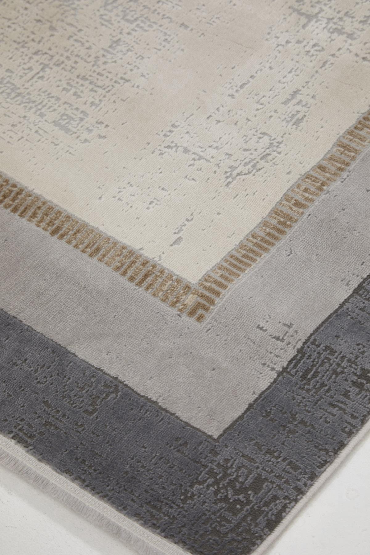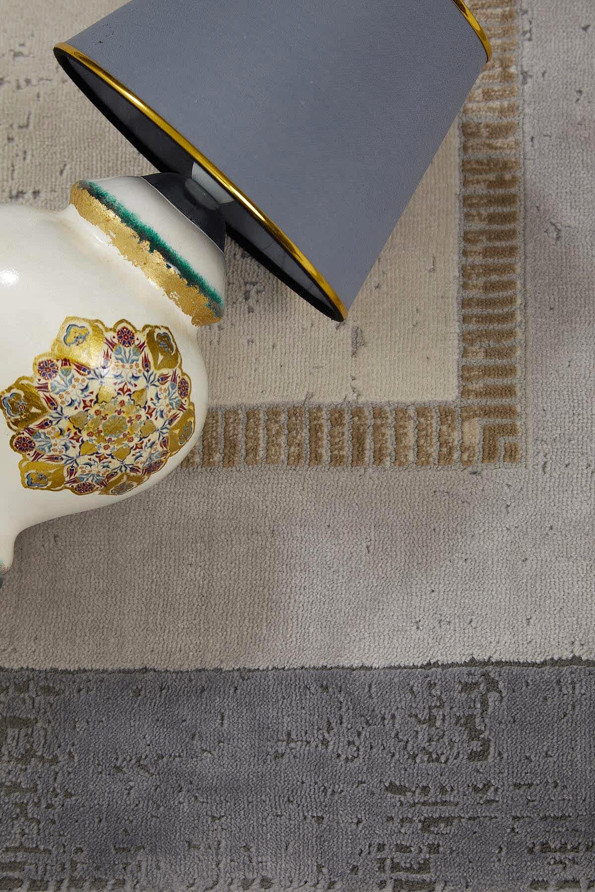 Dora 1901 Vizon – Çerçeve Desenli Eskitme Görünümlü Salon Halısı