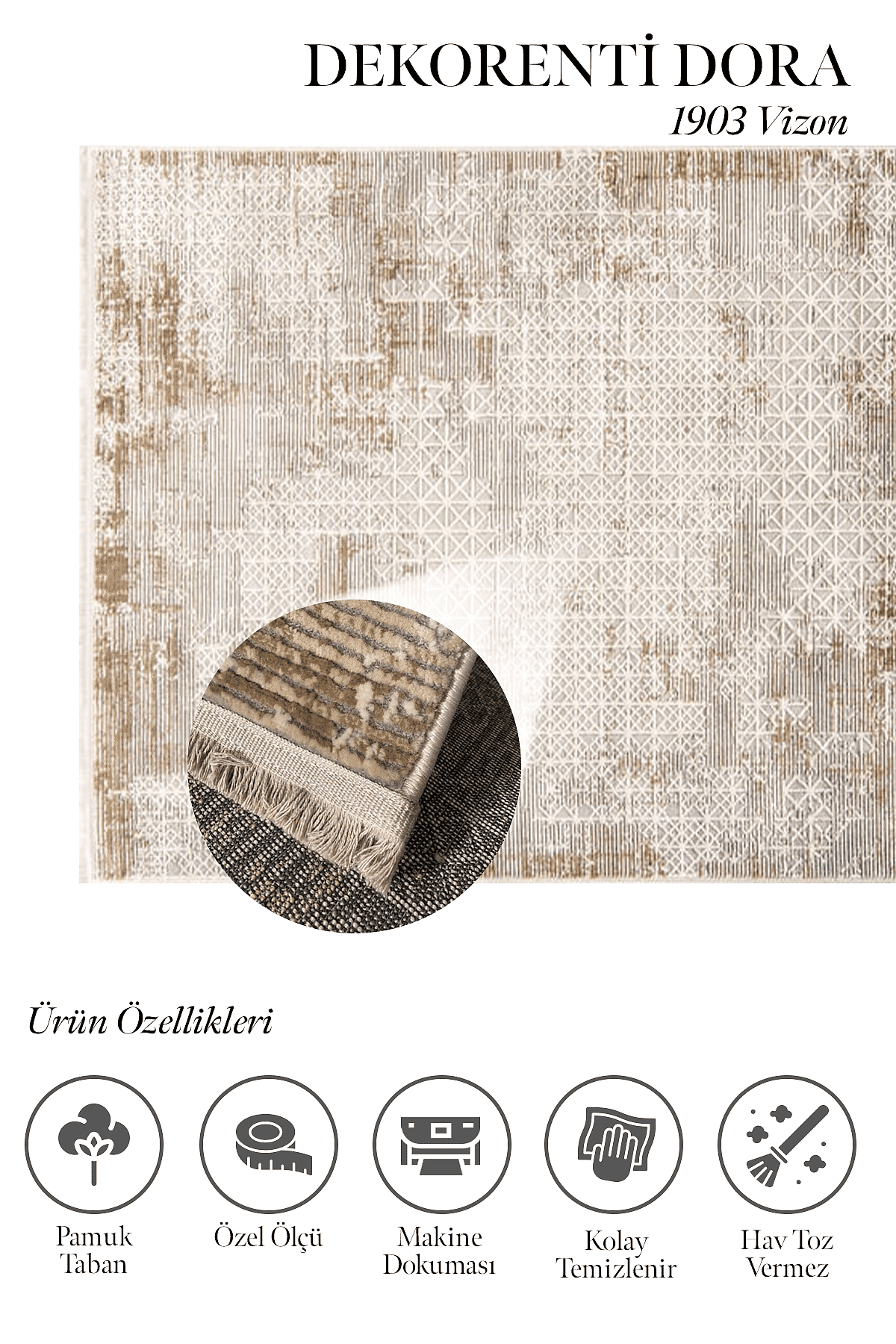 Dora 1903 Vizon – Modern ve Klasik Dekorasyona Uyumlu Şık Halı
