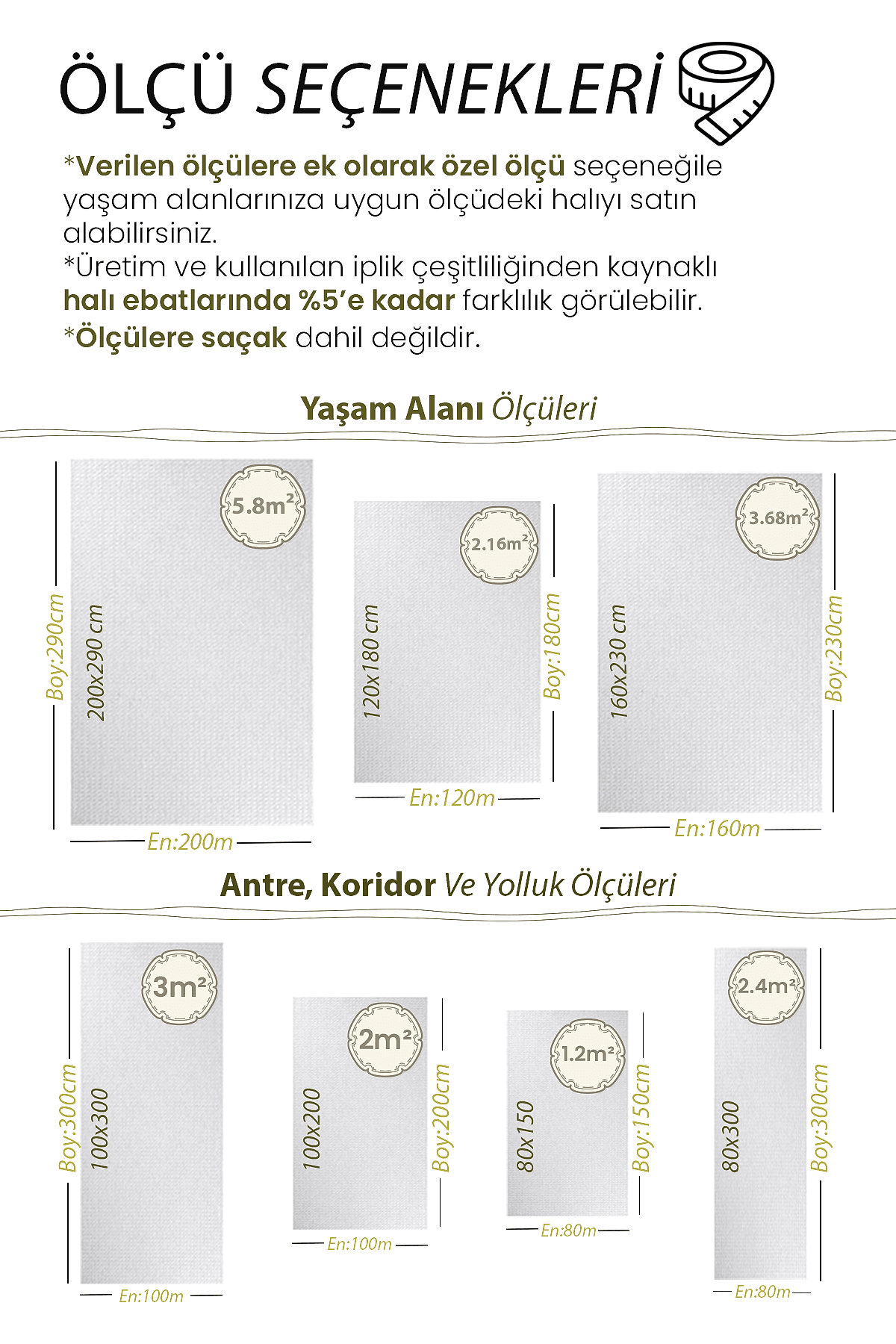| Ölçü | 80×150, 100×150, 80×200, 80×250, 100×200, 120×180, 80×300, 120×200, 100×250, 80×350, 100×300, 120×250, 80×400, 160×200, 100×350, 80×450, 120×300, 160×230, 80×500, 100×400, 160×250, 120×350, 100×450, 120×400, 160×300, 100×500, 200×250, 120×450, 200×290, 120×500 |