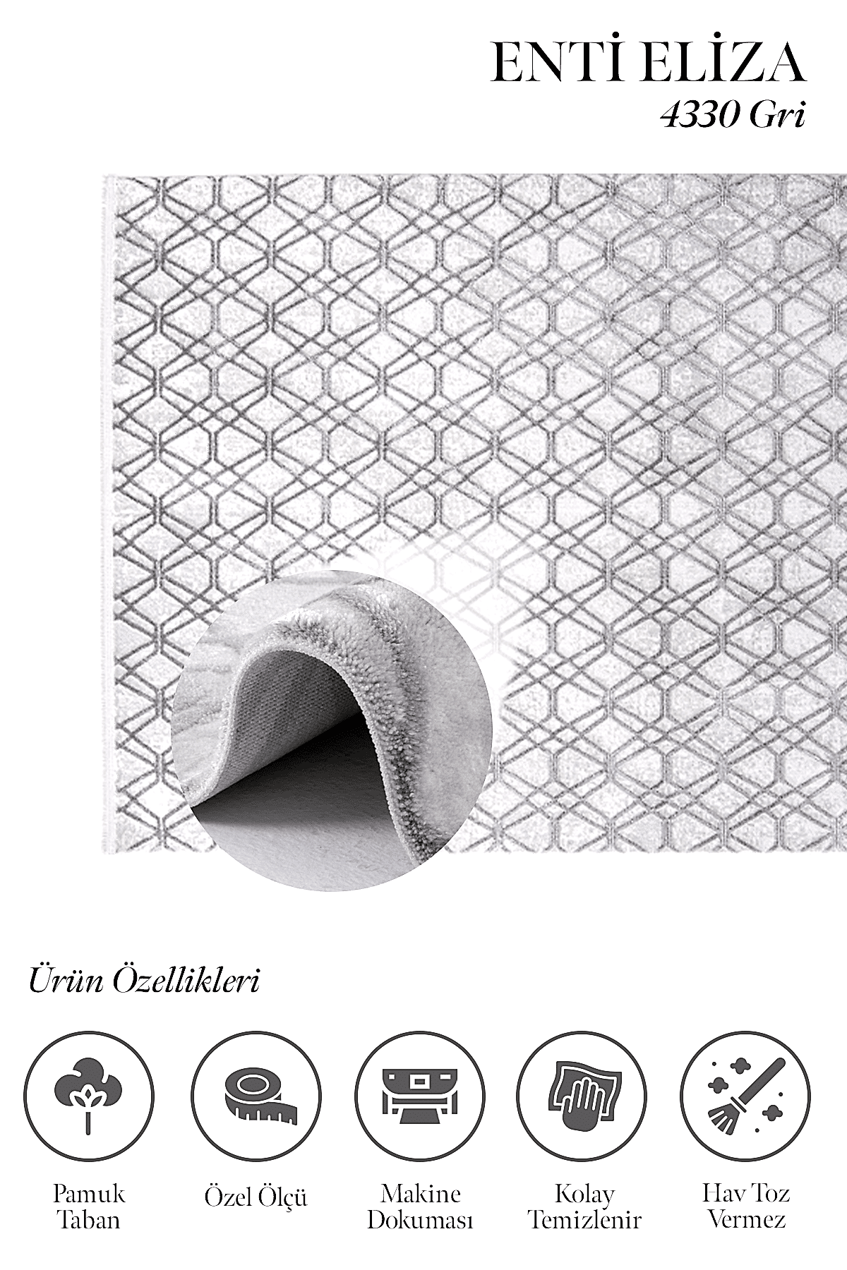 Eliza 4330 Gri – Yumuşak Tabanlı, Kolay Temizlenen Gri Halı