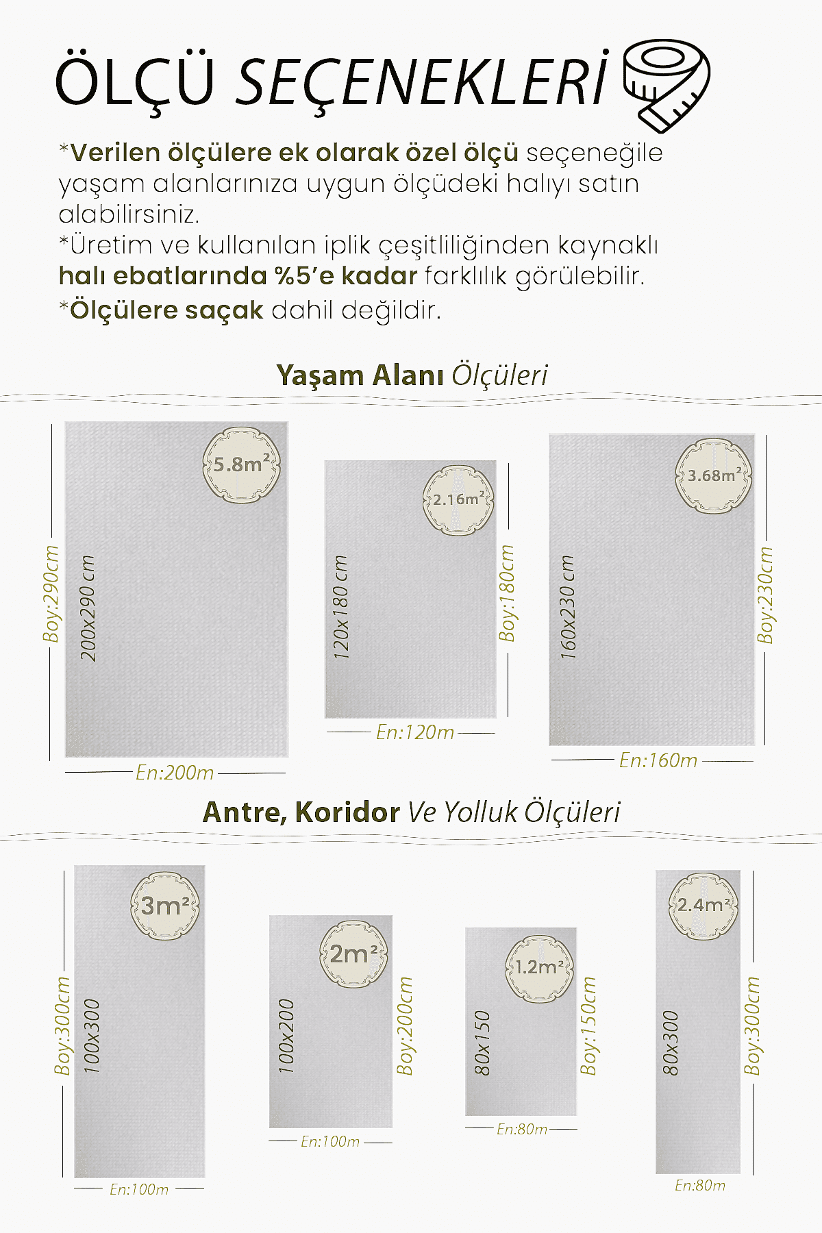 | Ölçü | 80×150, 100×150, 80×200, 80×250, 100×200, 120×180, 80×300, 120×200, 100×250, 80×350, 100×300, 120×250, 80×400, 160×200, 100×350, 80×450, 120×300, 160×230, 80×500, 100×400, 160×250, 120×350, 100×450, 120×400, 160×300, 100×500, 200×250, 120×450, 200×290, 120×500 |