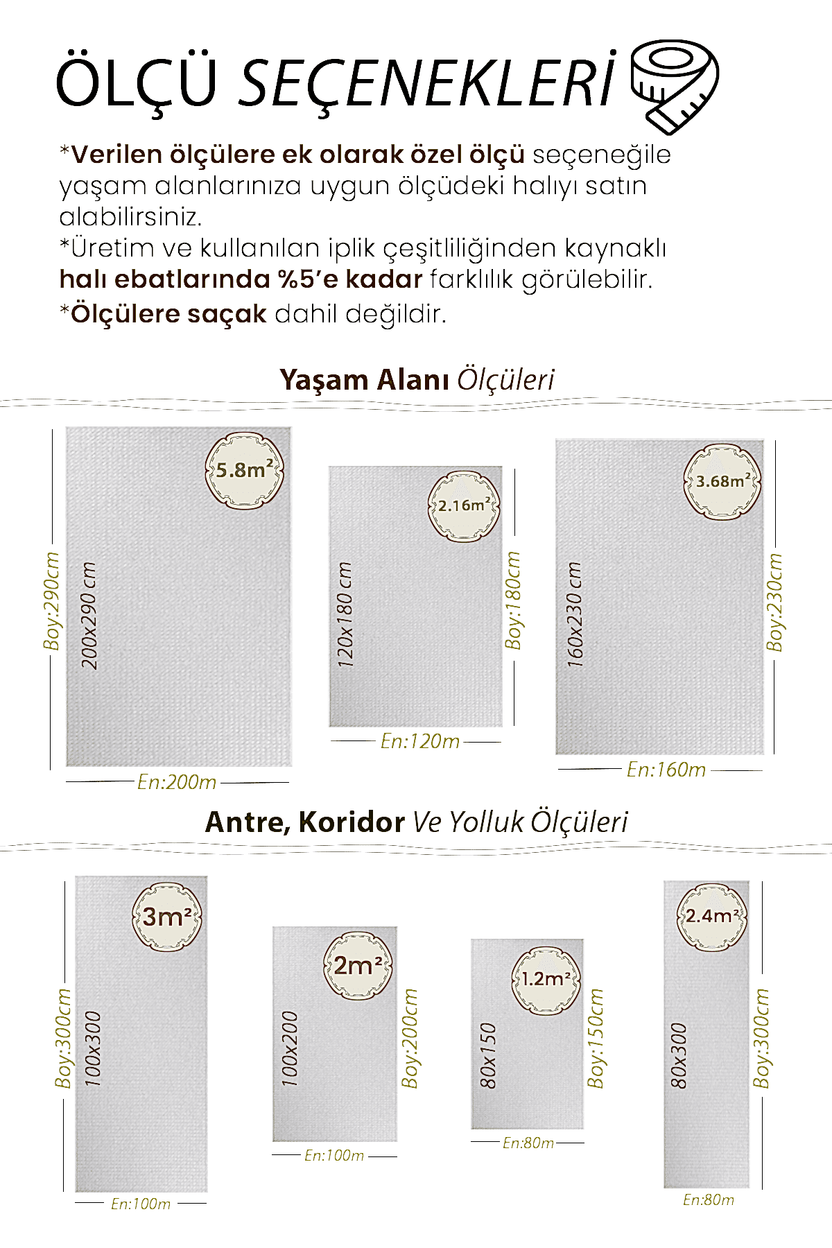 | Ölçü | 80×150, 80×300, 100×200, 120×180, 100×300, 160×230, 200×290 |
