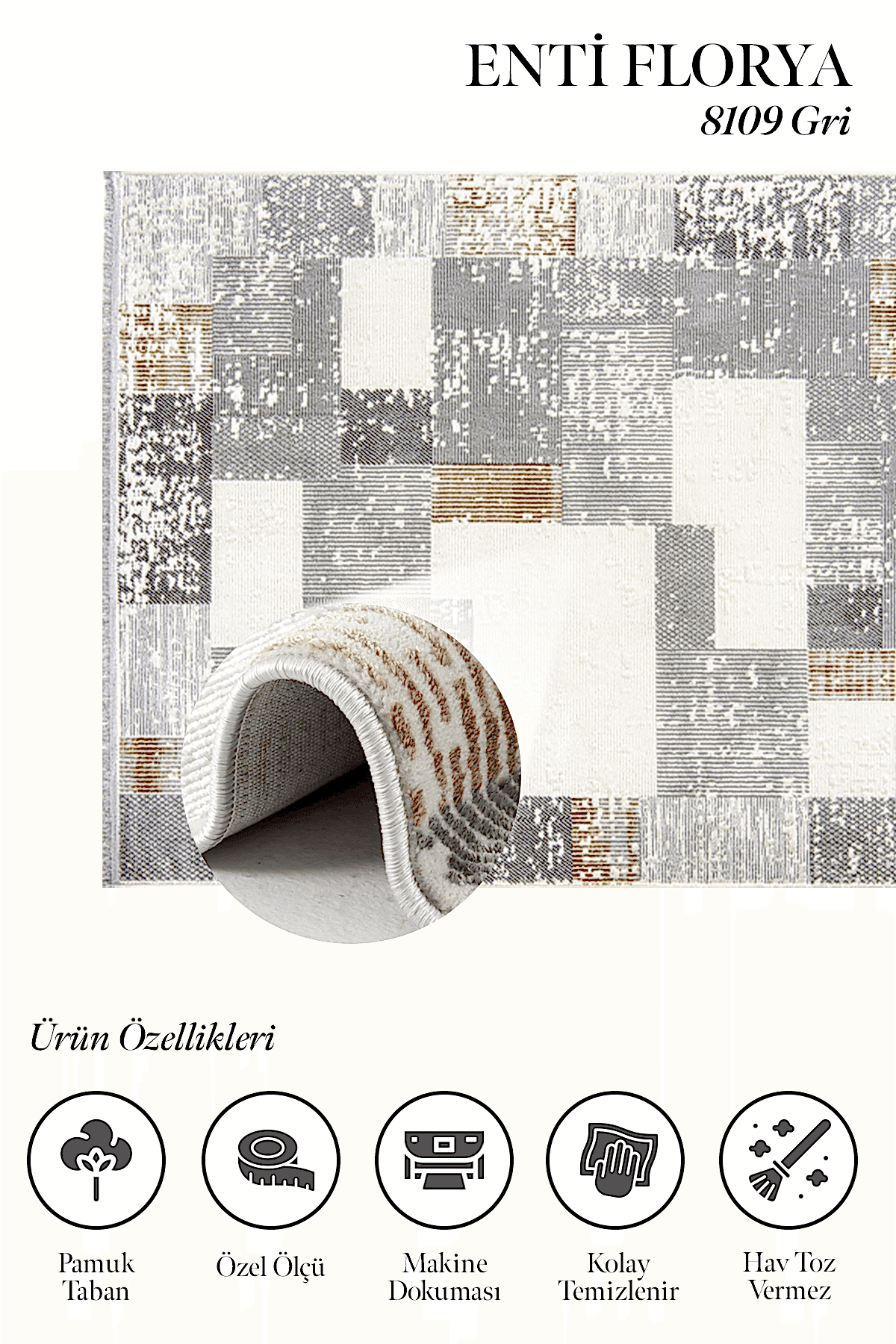 Enti halı markasının yeni serisi Florya’nın yüzeyindeki şık çizgileri ile oluşan desenler halıya modern bir hava katar. Ayrıca dokusunda en çok tercih edilen krem ve bej renkler hakimdir. Üstelik yumuşak bir yüzeye sahiptir ve hav, tüy çıkarmaz. Yan kenarları overlok dikişli, ön kısımları spor saçaklıdır ve pamuk atkılı tabana sahip bir modeldir. Florya serisi gerek kolay temizlenir olması gerekse neme küfe dayanıklı olmasından dolayı evin bir çok alanında verimli olarak kullanılır. Mikro polyester iplik türünde bir makina halısıdır.