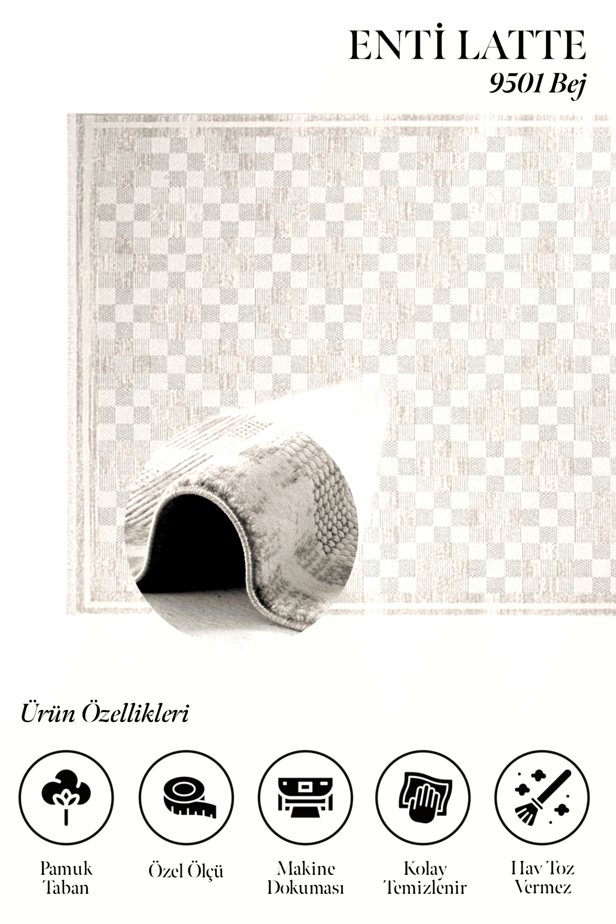 Latte 9501 Bej – Yumuşak Dokulu Oturma Odası Halısı