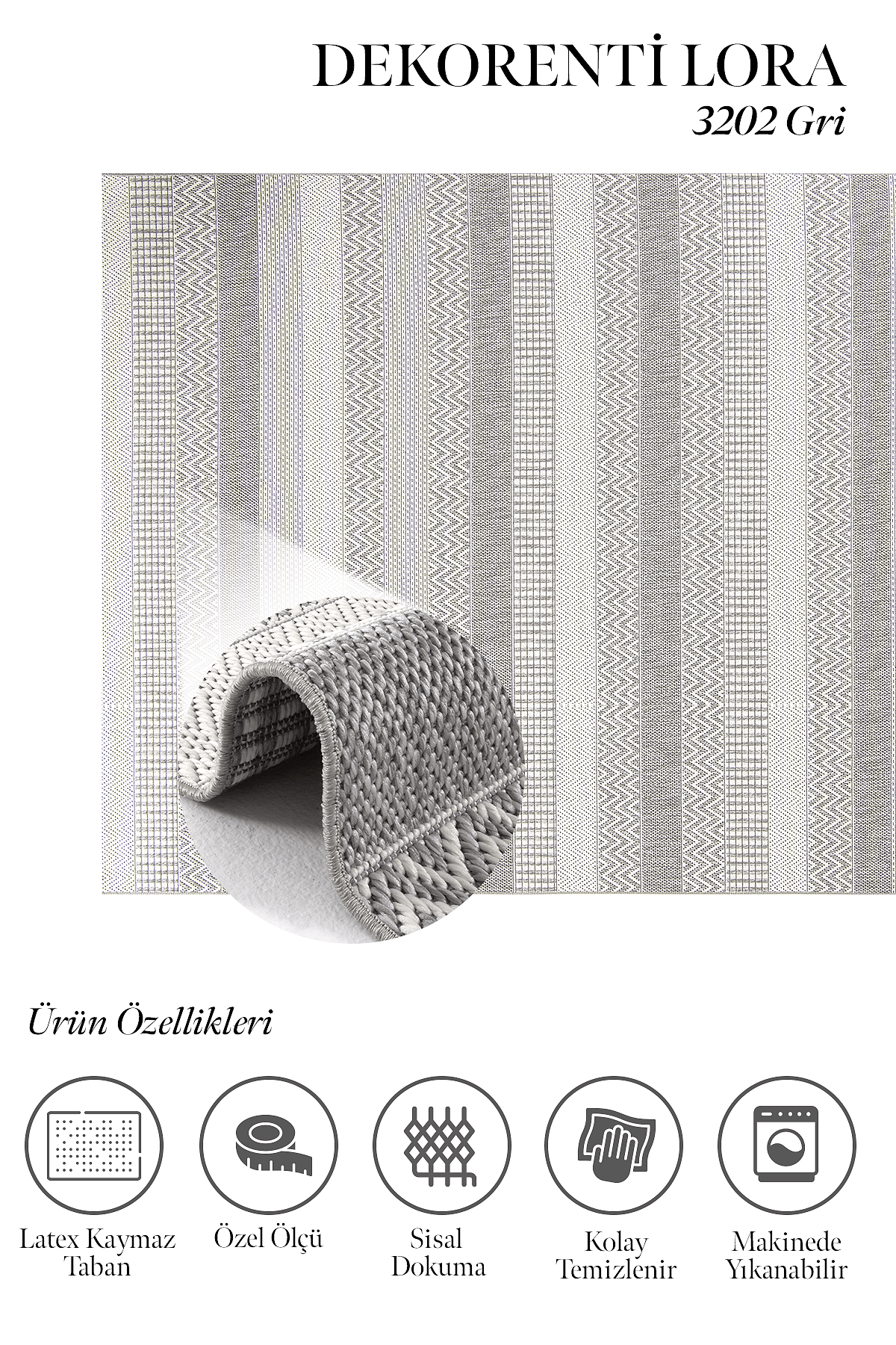 Oturma odası ve günlük kullanım alanları için ideal olan Lora halı, modern çizgisiyle evinizin havasını Modern Konforun Pratik Yüzüyenilerken pratik yapısıyla da kolaylık sağlar.