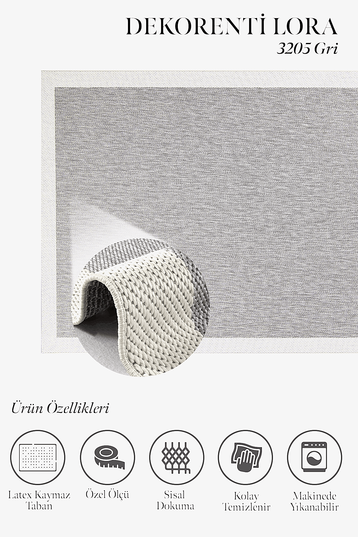 Lora 3205 Gri – İç ve Dış Mekana Uygun Gri Halı