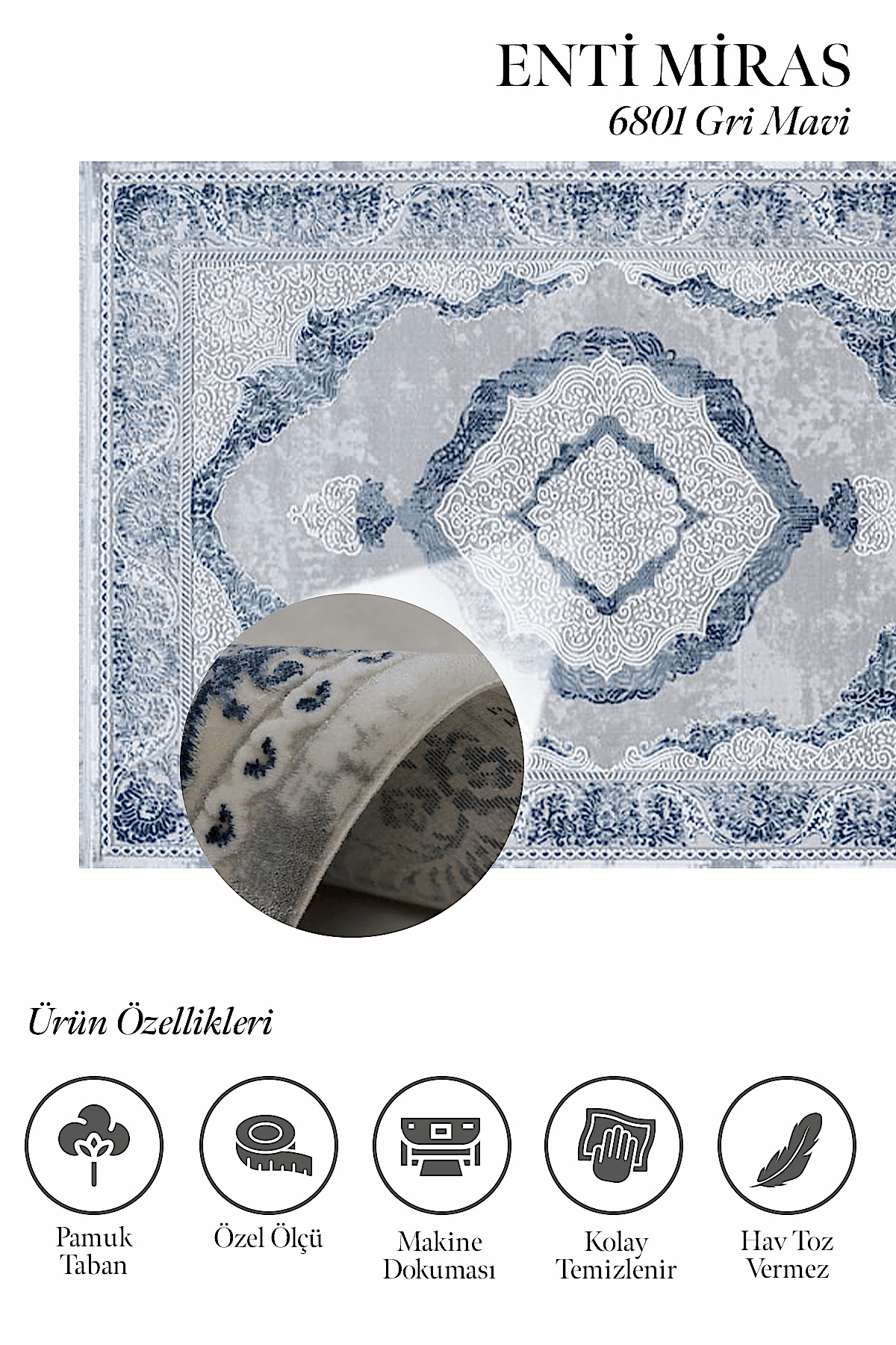 Miras 6801 Gri Mavi – Lüks ve Dayanıklı Makine Halısı