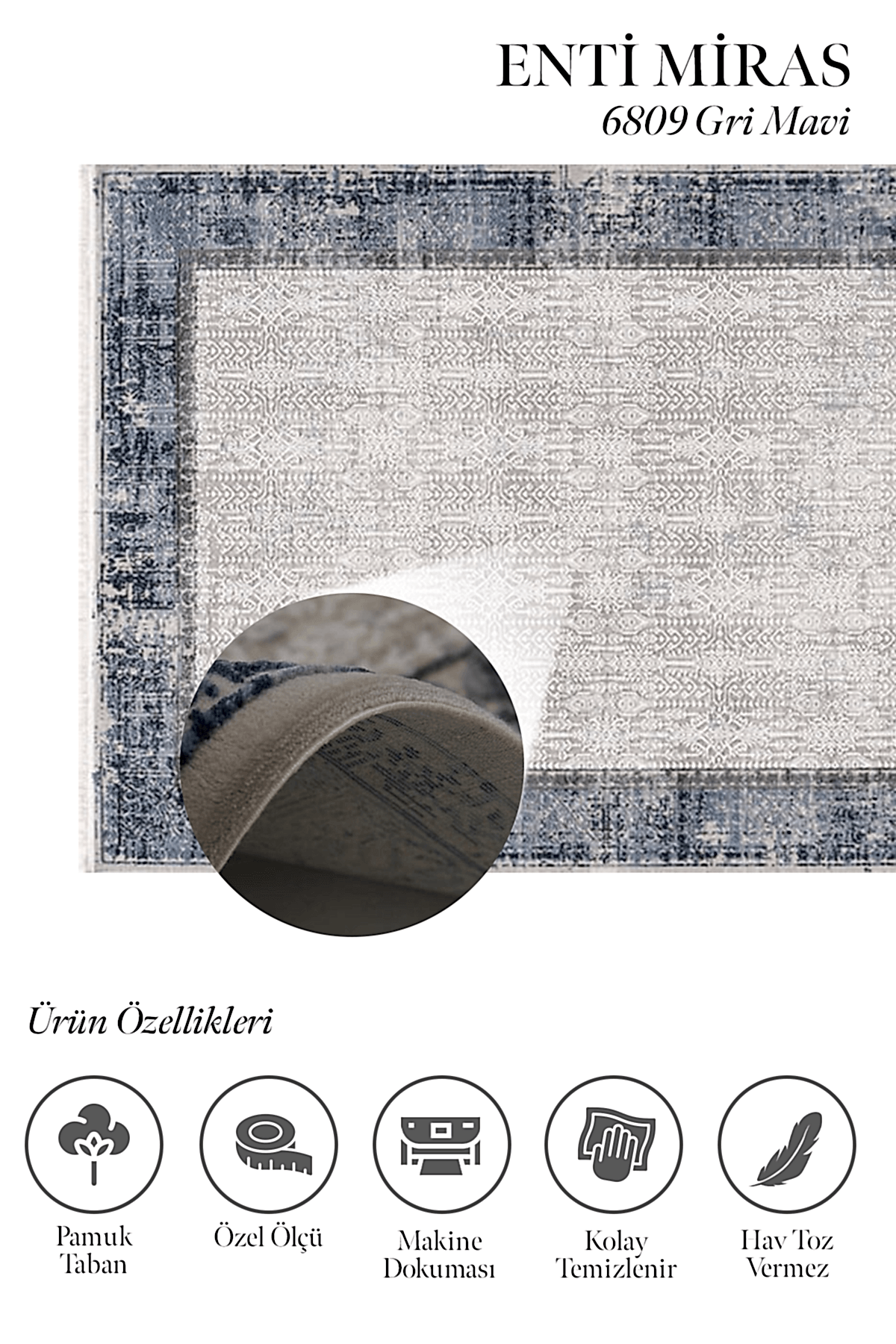 Miras 6809 Gri Mavi – Yumuşak Dokulu Yatak Odası Halısı