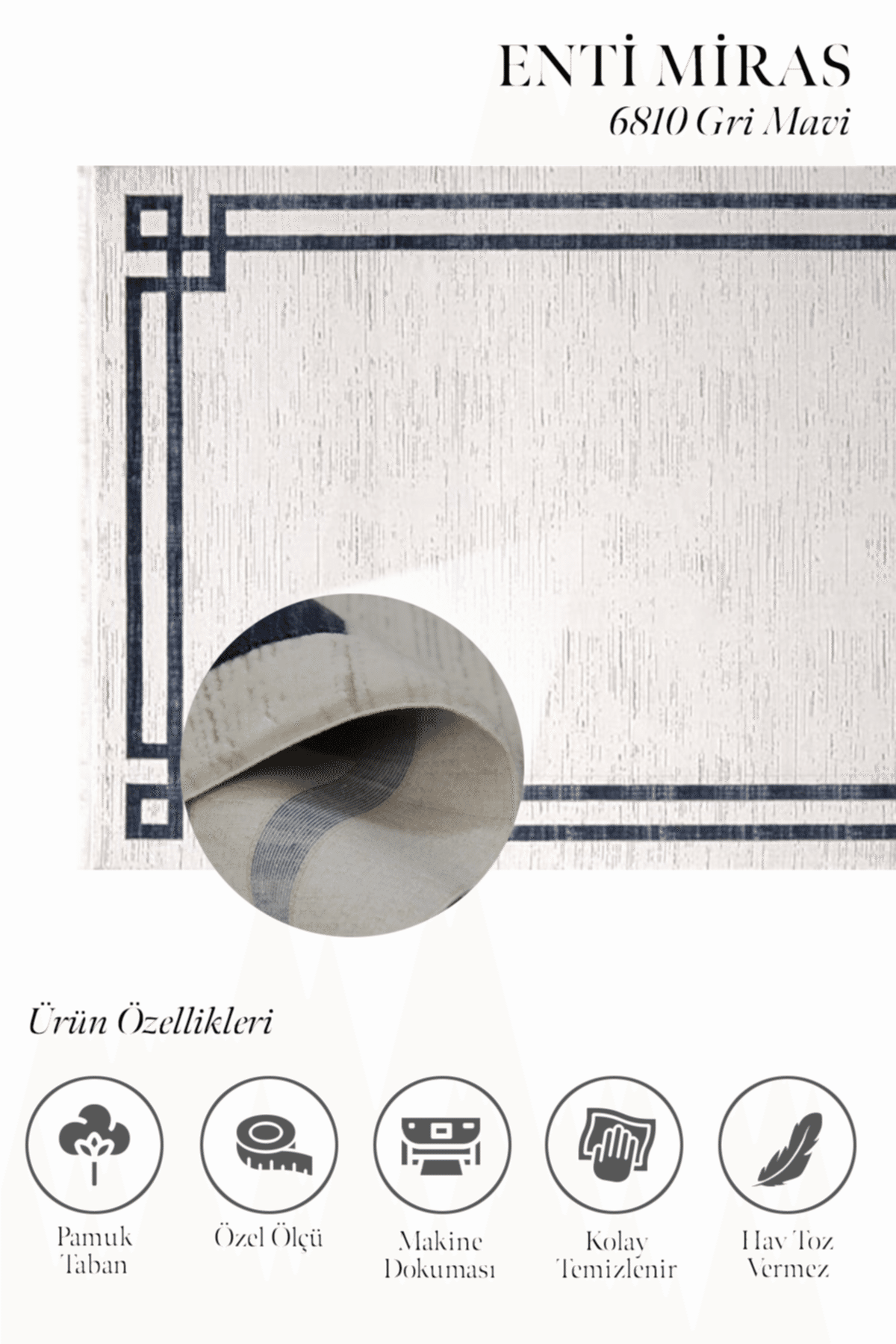 Miras serisi Enti halı markasının en popüler üst sınıf serisidir. Ayrıca Miras klasik ve modern desenleriyle ve geleneksel motifleriyle günümüzde de ev dekorasyonunun en önemli parçalarından biridir. Hav yüksekliği 11 mm.dir ve 1.008.000 ilme ucu sıklığında sık dokunmasıyla göz dolduran bir modeldir. Akrilik iplik türünde olması en önemli tercih sebebidir. Çünkü kolay temizlenir ve yumuşak dokusuyla keyifli görünüm verir. Üstelik dokusunda çok tercik edilen mavi, gri, kahve, siyah ve beyaz renkler hakimdir. Miras serisi saçaklı, pamuk tabanlı ve yane kenarları lazer kesim olan makine halısıdır.