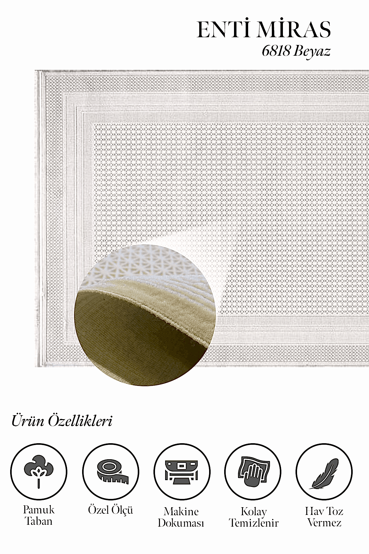 Miras serisi Enti halı markasının en popüler üst sınıf serisidir. Ayrıca Miras klasik ve modern desenleriyle ve geleneksel motifleriyle günümüzde de ev dekorasyonunun en önemli parçalarından biridir. Hav yüksekliği 11 mm.dir ve 1.008.000 ilme ucu sıklığında sık dokunmasıyla göz dolduran bir modeldir. Akrilik iplik türünde olması en önemli tercih sebebidir. Çünkü kolay temizlenir ve yumuşak dokusuyla keyifli görünüm verir. Üstelik dokusunda çok tercik edilen mavi, gri, kahve, siyah ve beyaz renkler hakimdir. Miras serisi saçaklı, pamuk tabanlı ve yane kenarları lazer kesim olan makine halısıdır.
