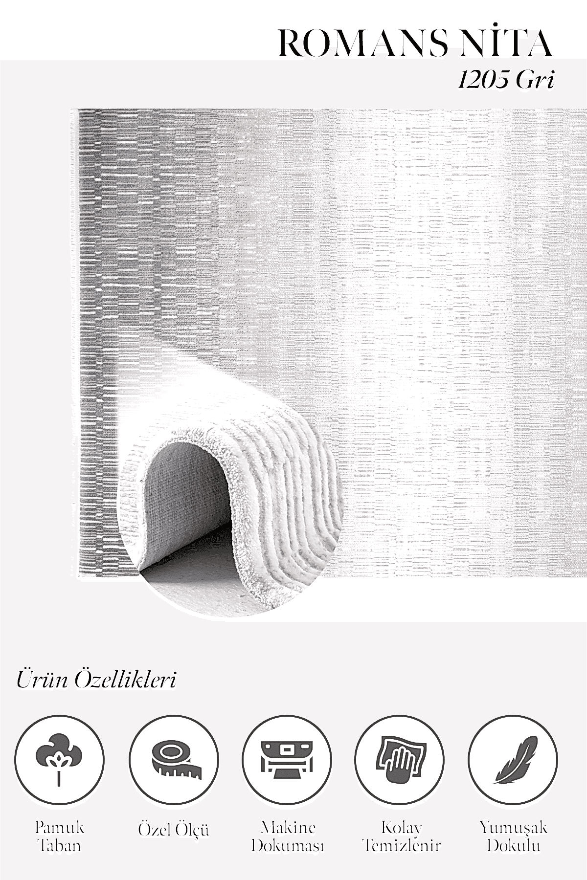 Nita 1205 Gri – Işığa Göre Derinlik Veren Gri Halı Tasarımı