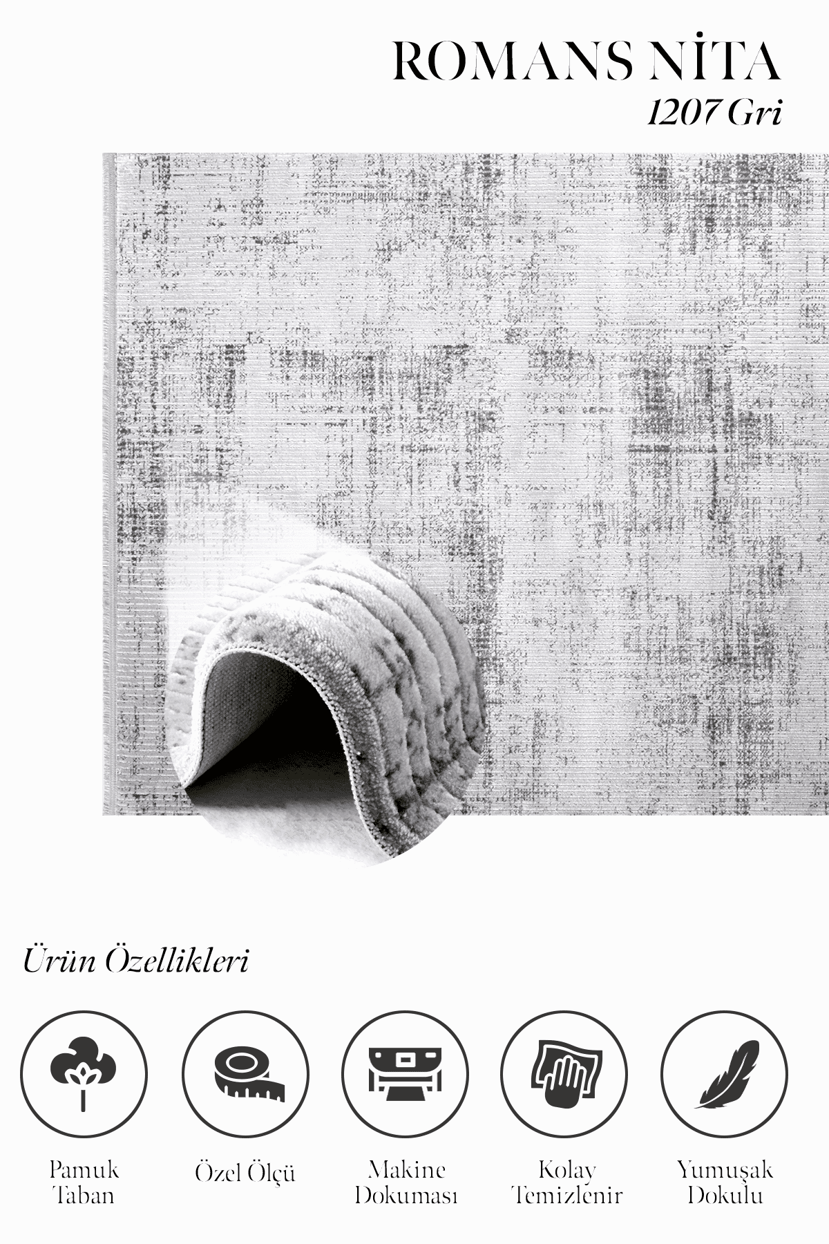 Nita 1207 Gri – Soft Tonlarda Gri Oturma Odası Halısı