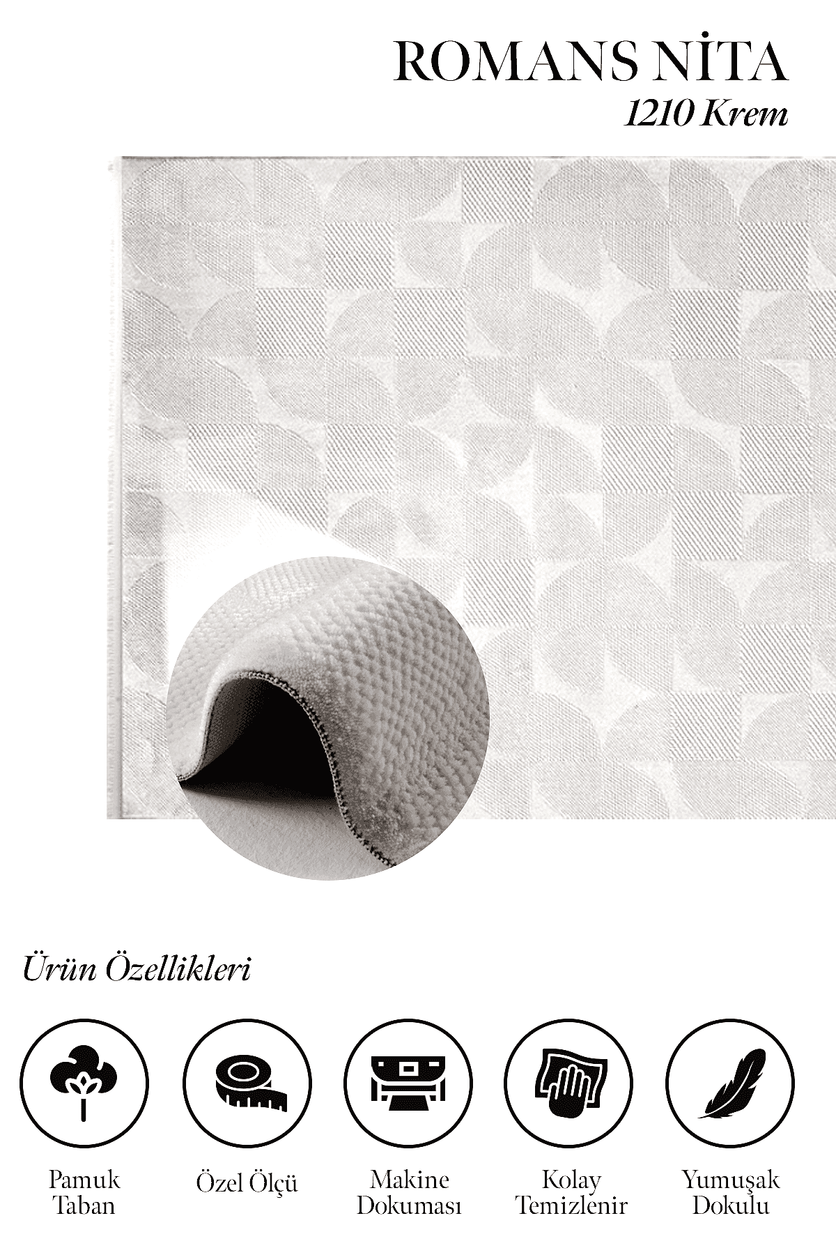 Nita 1210 Krem – Modern Stilde Krem Renk Oturma Odası Halısı