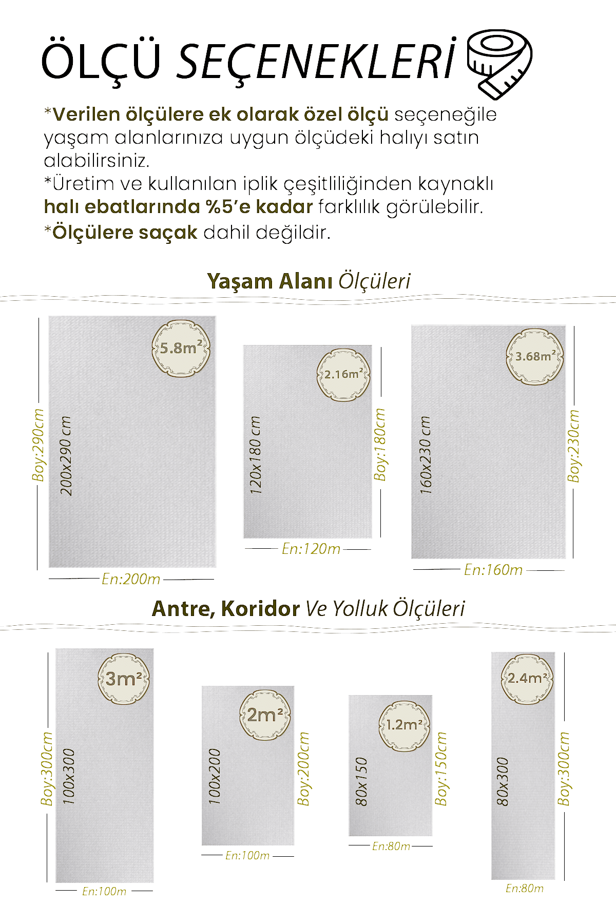| Ölçü | 80×150, 80×200, 80×250, 80×300, 80×350, 80×400, 80×450, 80×500, 100×150, 100×200, 100×250, 100×300, 100×350, 100×400, 100×450, 100×500, 120×180, 120×200, 120×250, 120×300, 120×350, 120×400, 120×450, 120×500, 160×200, 160×230, 160×250, 160×300, 200×250, 200×290 |
