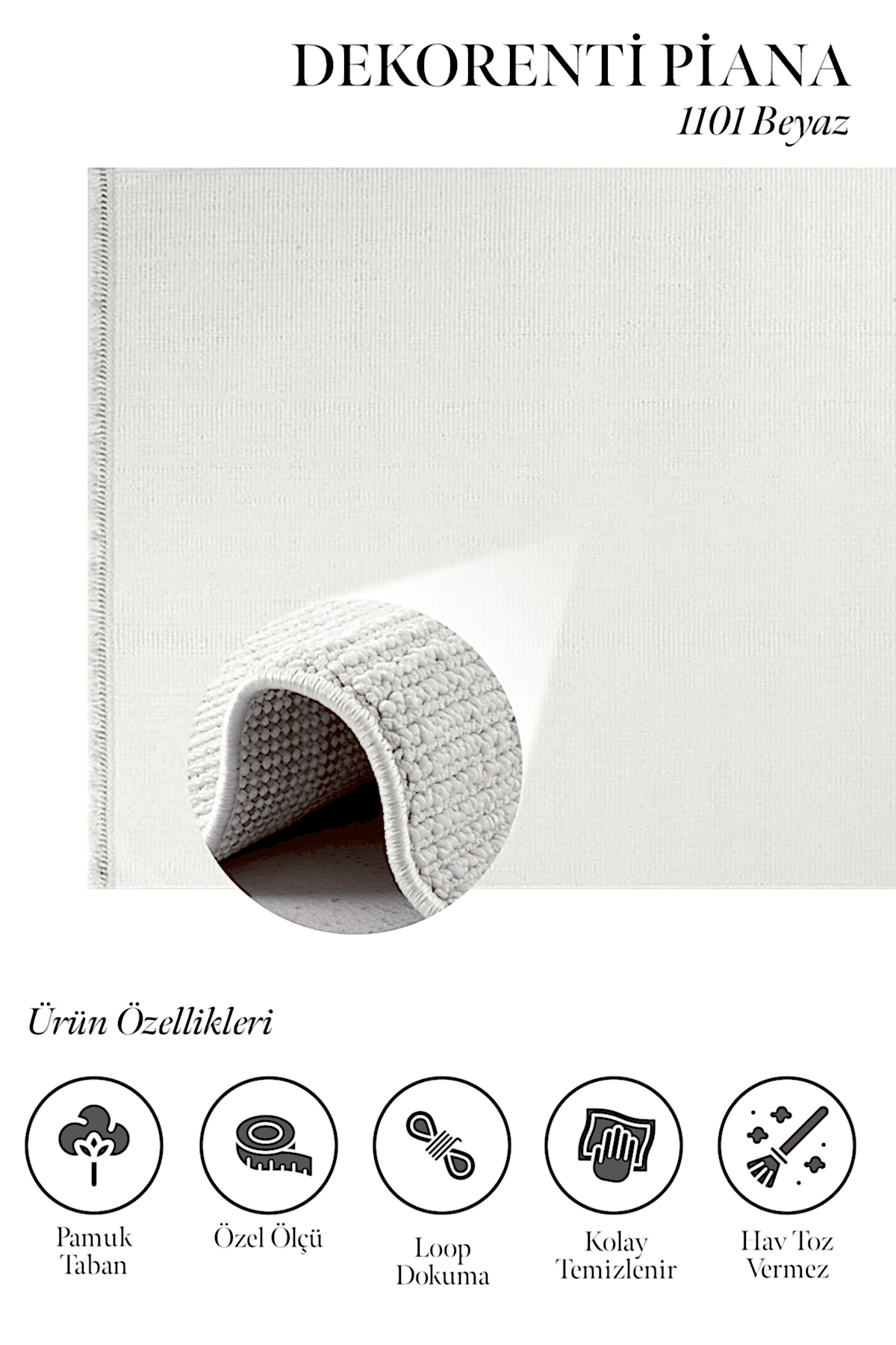 Piana 1101 Beyaz – Ferahlatıcı Beyaz Renkli İnce Dokulu Halı