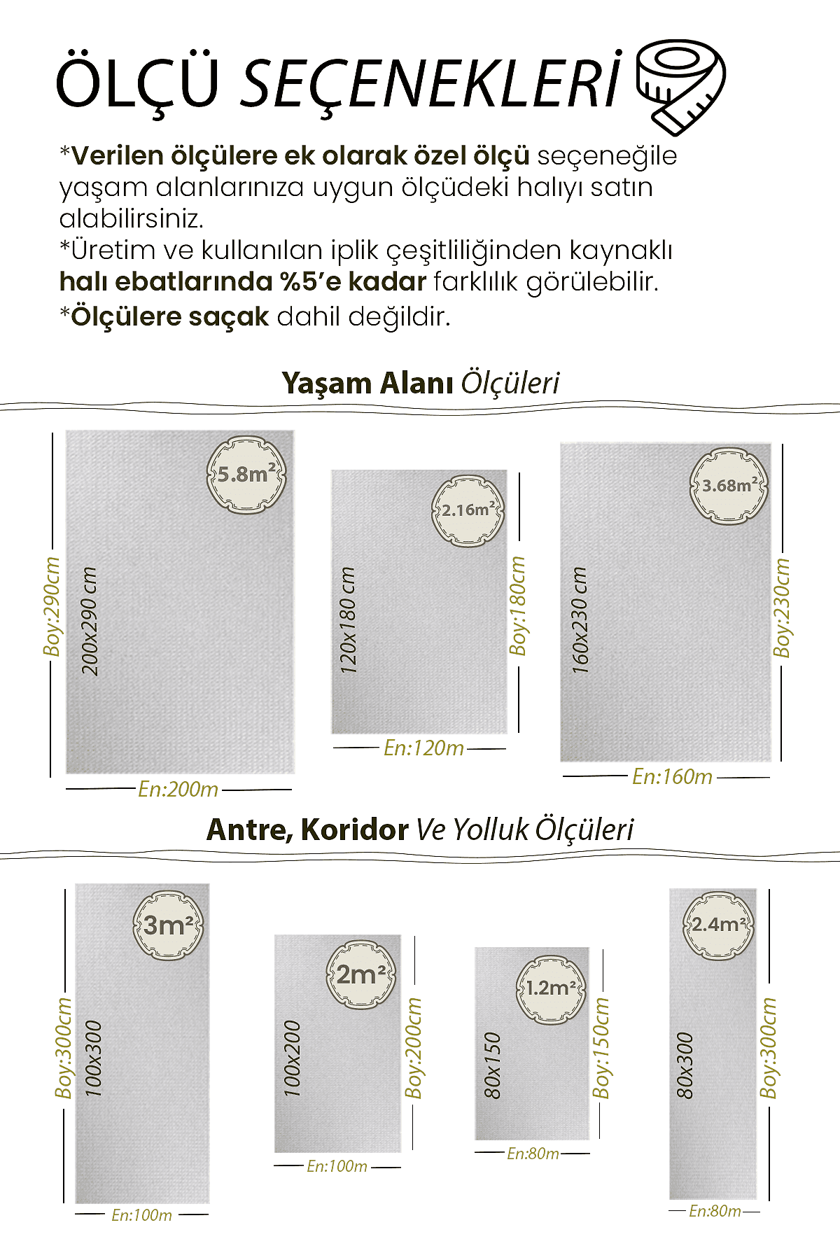 | Ölçü | 80×150, 80×200, 80×250, 80×300, 80×350, 80×400, 80×450, 80×500, 100×150, 100×200, 100×250, 100×300, 100×350, 100×400, 100×450, 100×500, 120×180, 120×200, 120×250, 120×300, 120×350, 120×400, 120×450, 120×500, 160×200, 160×230, 160×250, 160×300, 200×250, 200×290 |