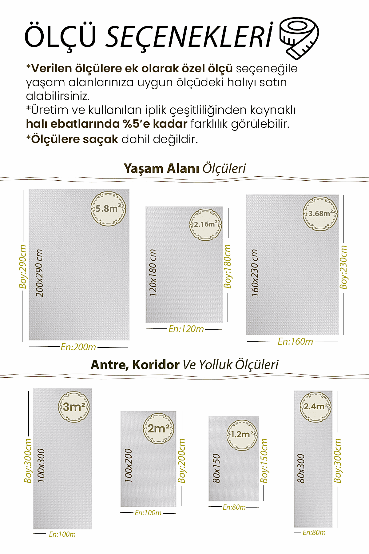 | Ölçü | 80×150, 80×200, 80×250, 80×300, 80×350, 80×400, 80×450, 80×500, 100×150, 100×200, 100×250, 100×300, 100×350, 100×400, 100×450, 100×500, 120×180, 120×200, 120×250, 120×300, 120×350, 120×400, 120×450, 120×500, 160×200, 160×230, 160×250, 160×300, 200×250, 200×290 |