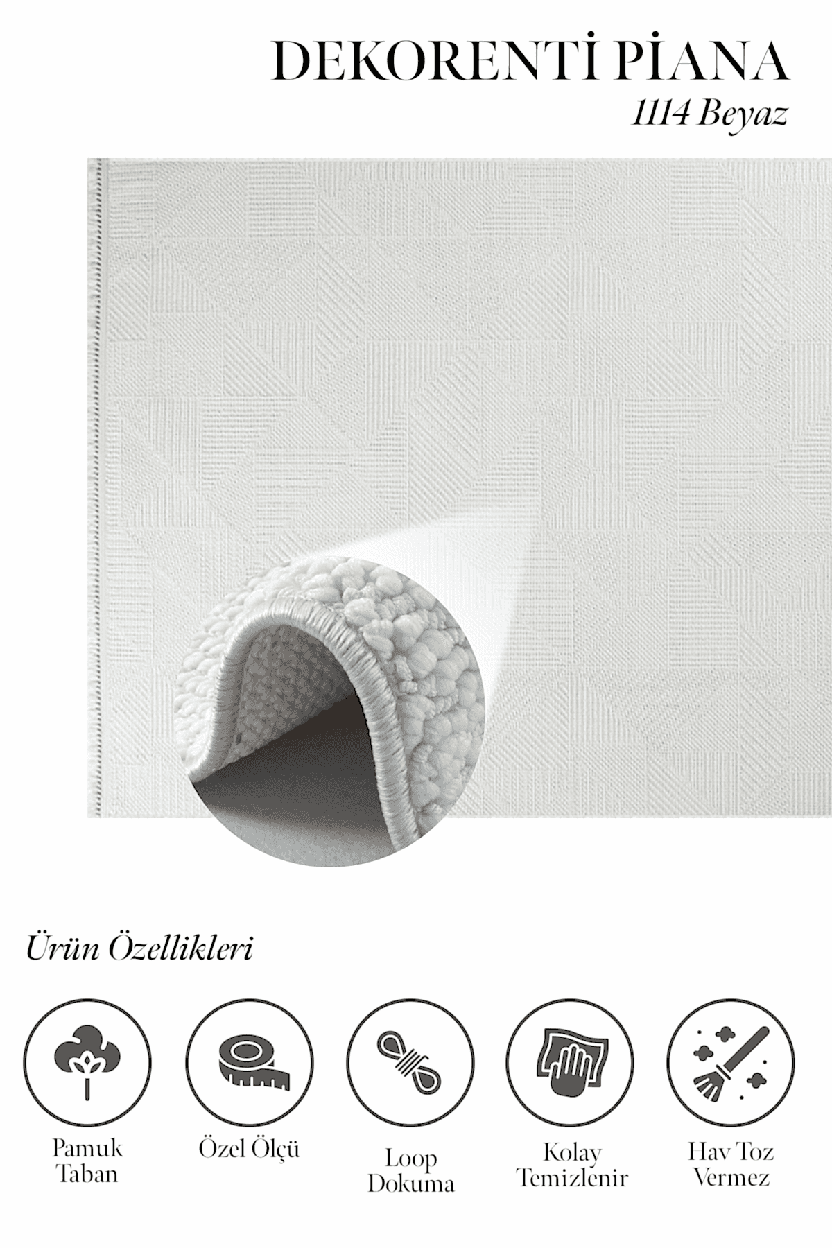 Piana 1114 Beyaz – Modern Çizgilerle Şekillenmiş Beyaz Halı