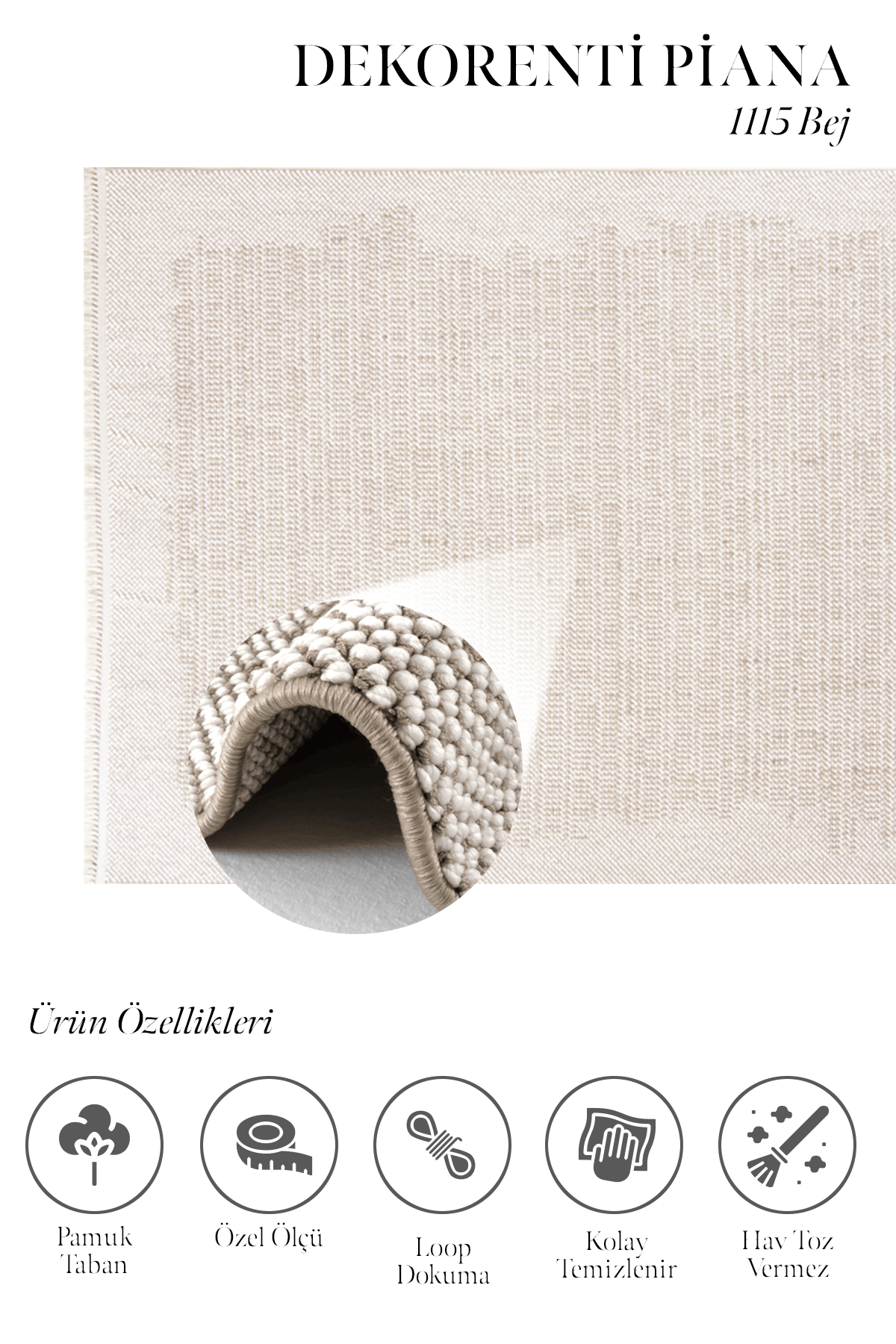 Piana 1115 Bej – Açık Tonlu, Minimal Tarzda Bej Oturma Odası Halısı