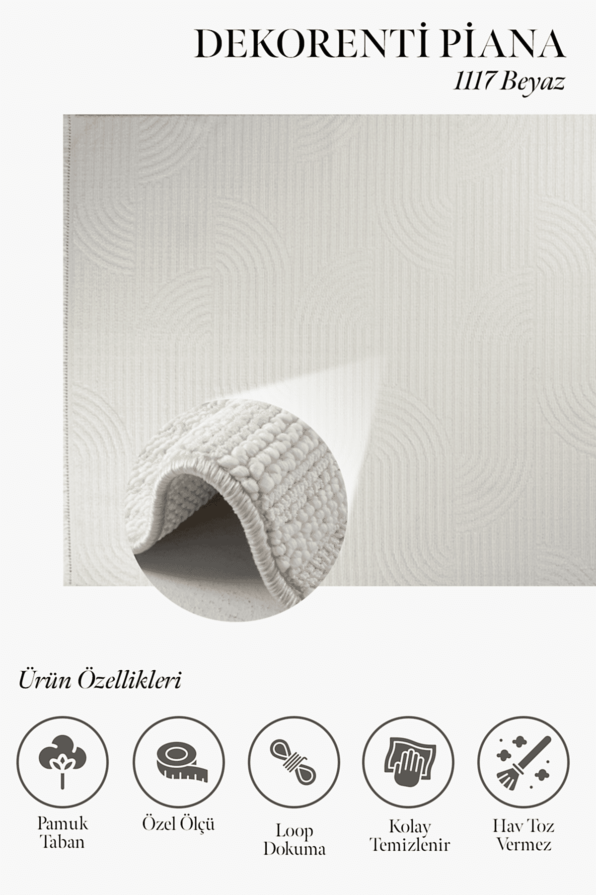 Piana 1117 Beyaz – Aydınlık Oturma Odaları İçin Kavis Detaylı Halı