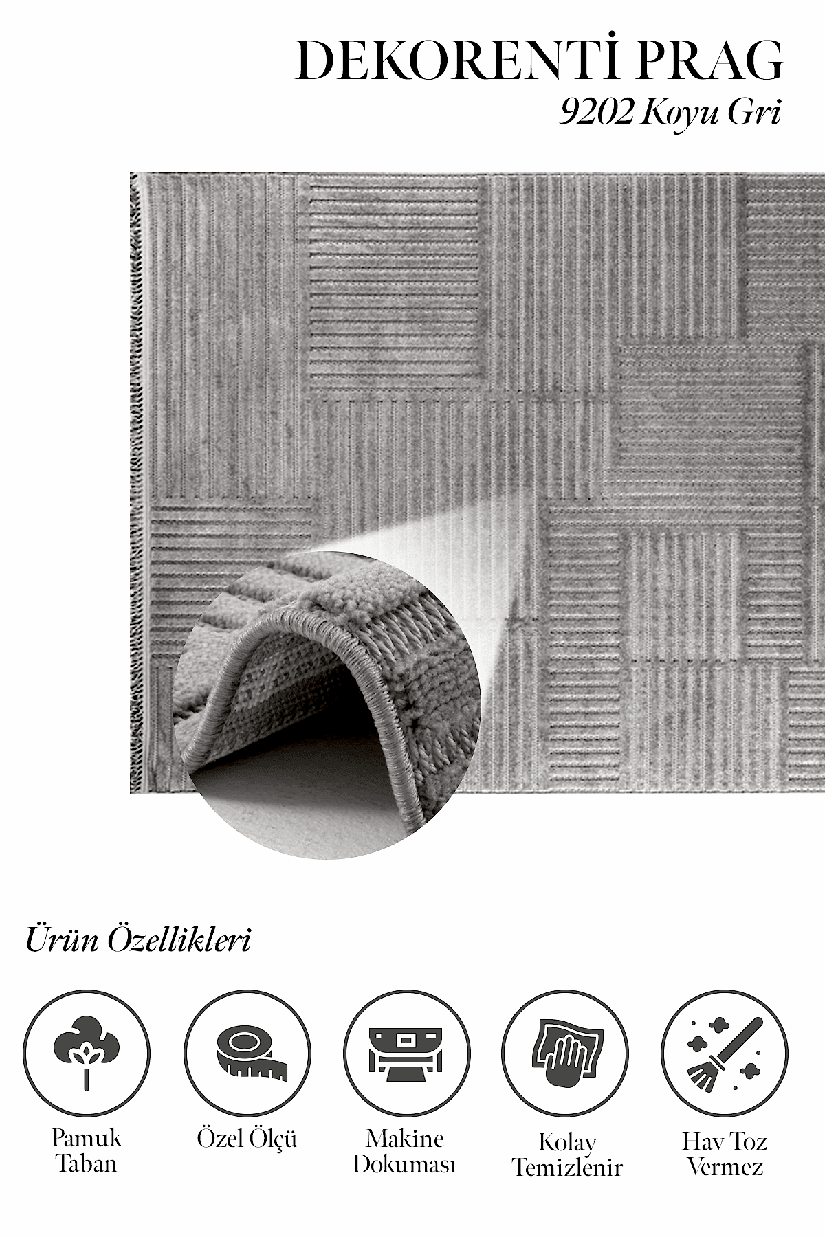 Prag 9202 Gri- Modern Dokulu ve Parçalı Desen Koyu Gri Halı