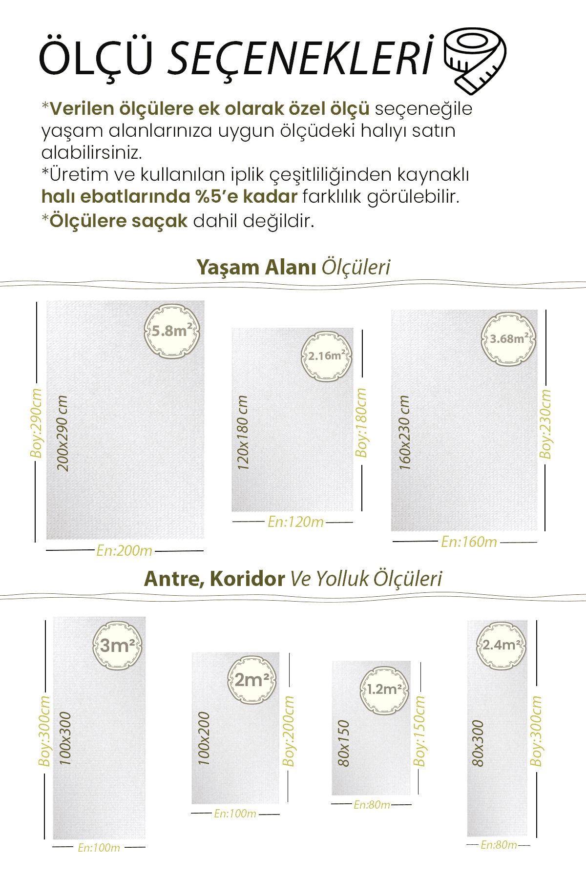 | Ölçü | 80×150, 80×200, 80×250, 80×300, 80×350, 80×400, 80×450, 80×500, 100×150, 100×200, 120×180, 120×200, 100×250, 100×300, 120×250, 160×200, 100×350, 120×300, 160×230, 100×400, 160×250, 120×350, 100×450, 120×400, 160×300, 100×500, 200×250, 120×450, 200×290, 120×500 |