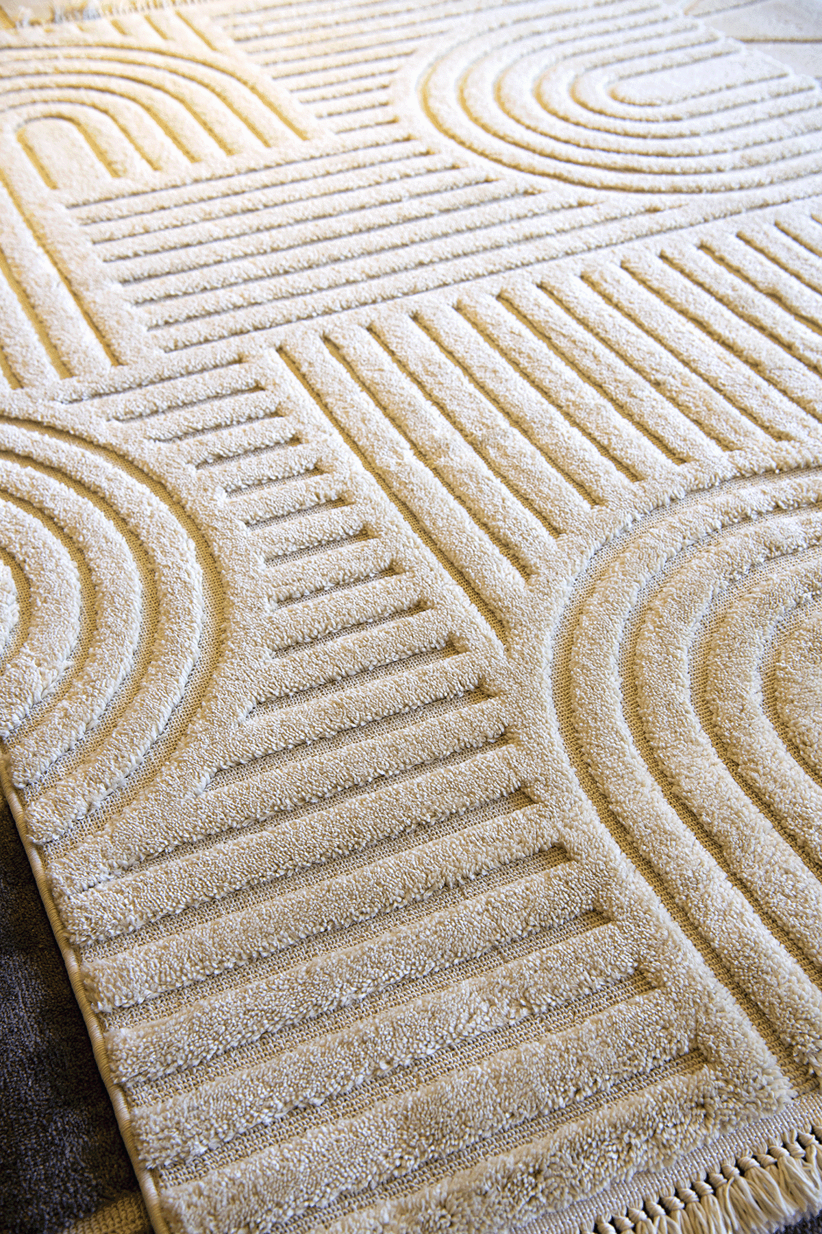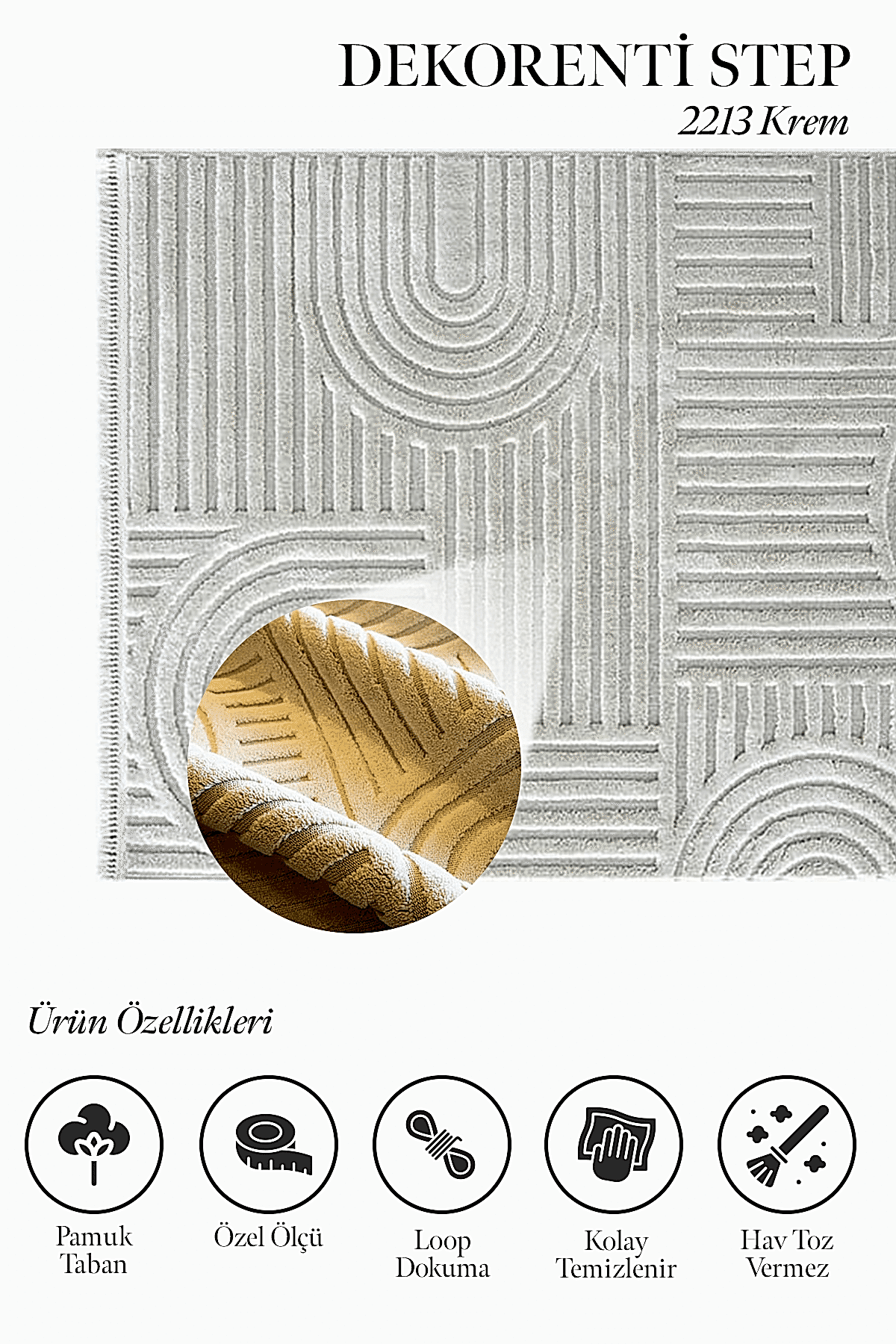 Step 2213 Krem – Kabartmalı Desenli Krem Salon Halısı