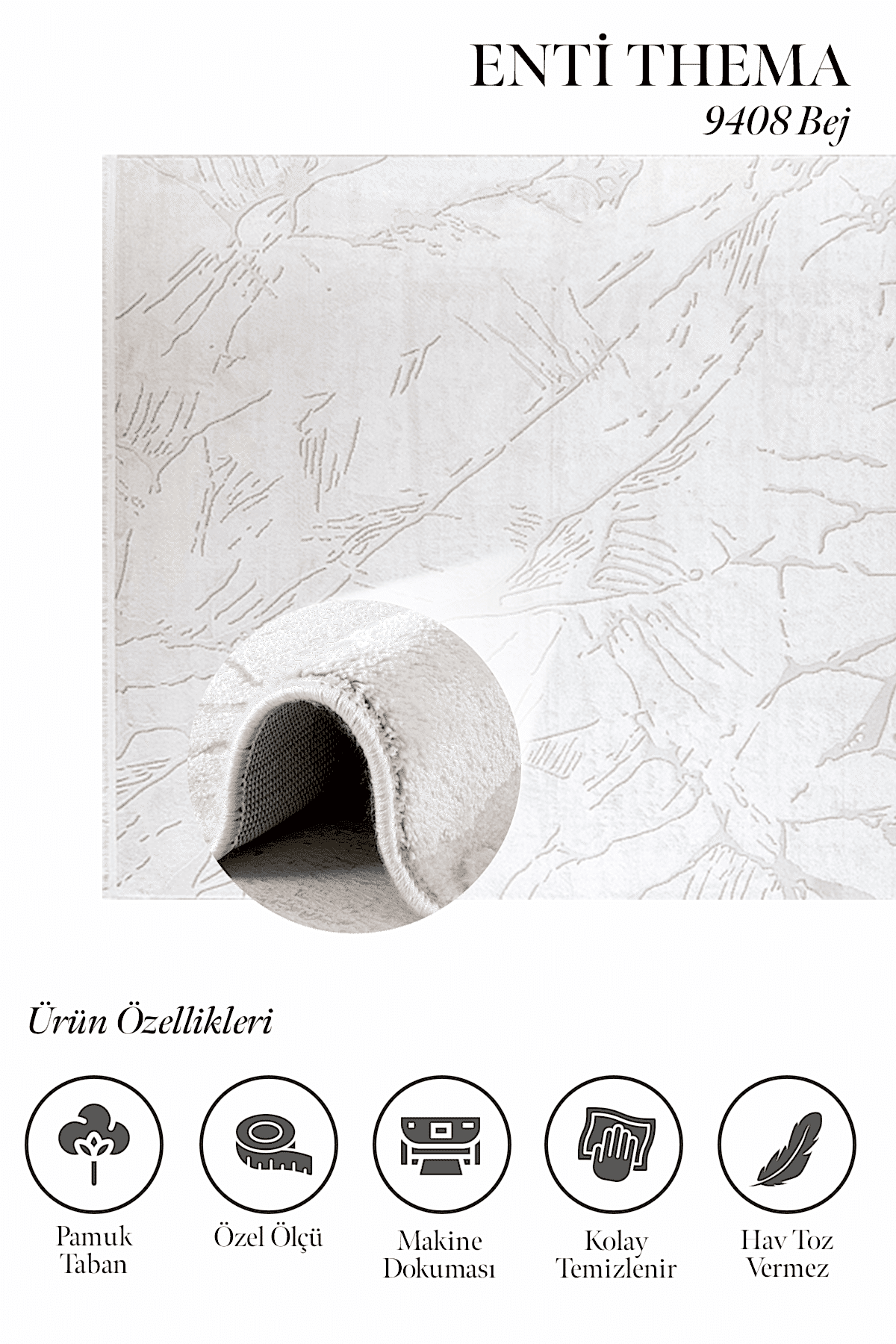 Thema 9408 Bej – Natürel Tonlarda Minimal Bej Halı Modeli
