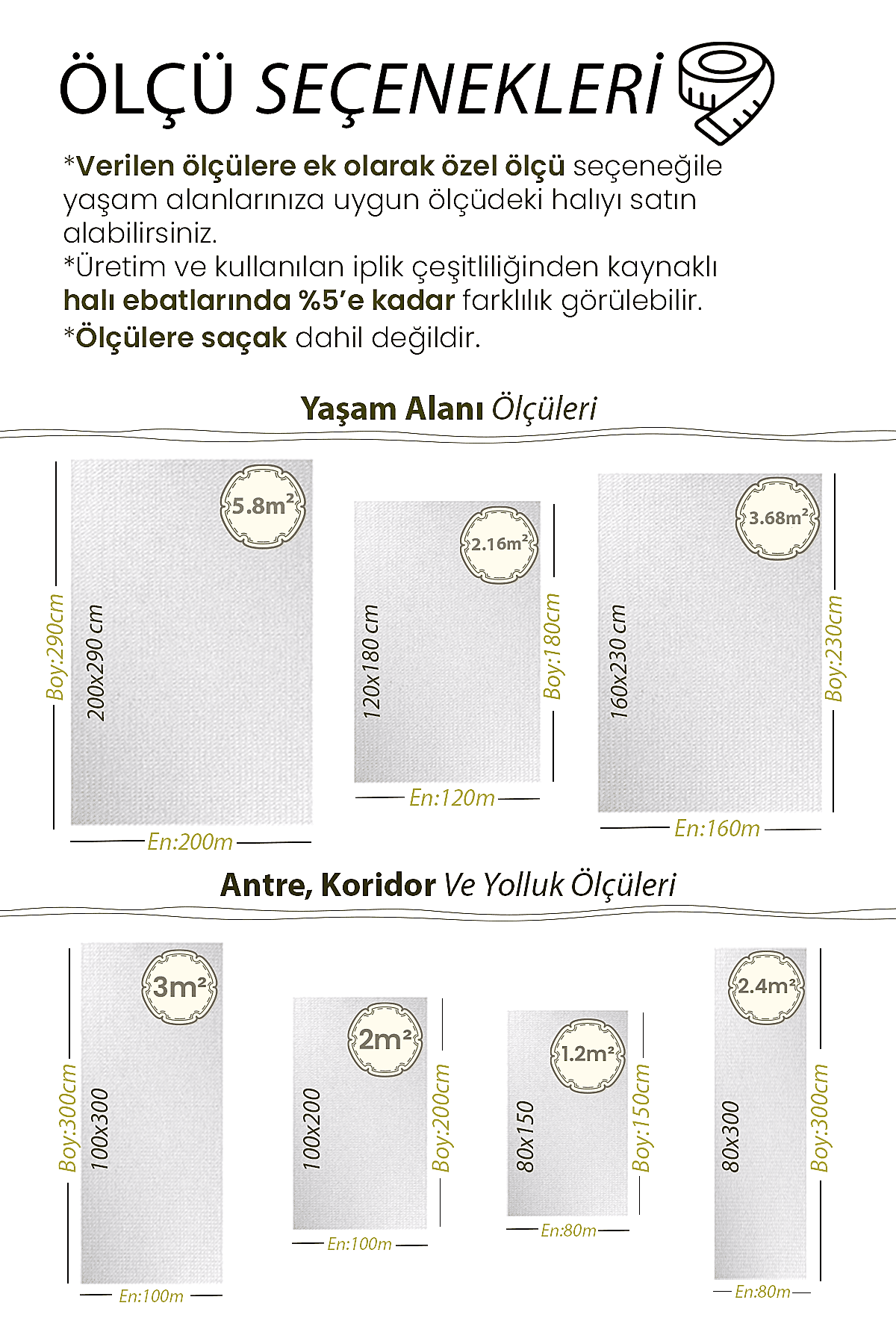 | Ölçü | 80×150, 100×150, 80×200, 80×250, 100×200, 120×180, 80×300, 120×200, 100×250, 80×350, 100×300, 120×250, 80×400, 160×200, 100×350, 80×450, 120×300, 160×230, 80×500, 100×400, 160×250, 120×350, 100×450, 120×400, 160×300, 100×500, 200×250, 120×450, 200×290, 120×500 |