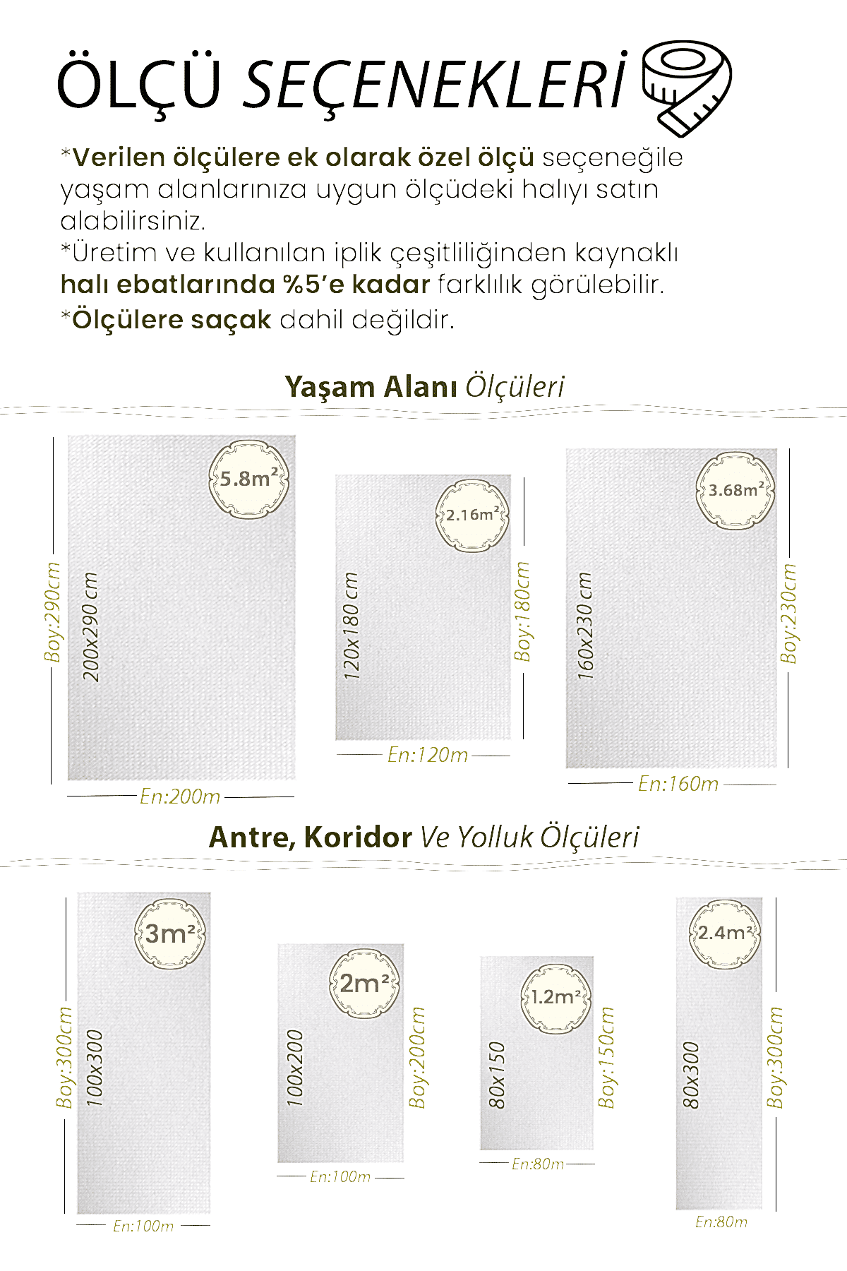 | Ölçü | 80×150, 80×200, 80×250, 80×300, 80×350, 80×400, 80×450, 80×500, 100×150, 100×200, 120×180, 120×200, 100×250, 100×300, 120×250, 160×200, 100×350, 120×300, 160×230, 100×400, 160×250, 120×350, 100×450, 120×400, 160×300, 100×500, 200×250, 120×450, 200×290, 120×500 |
